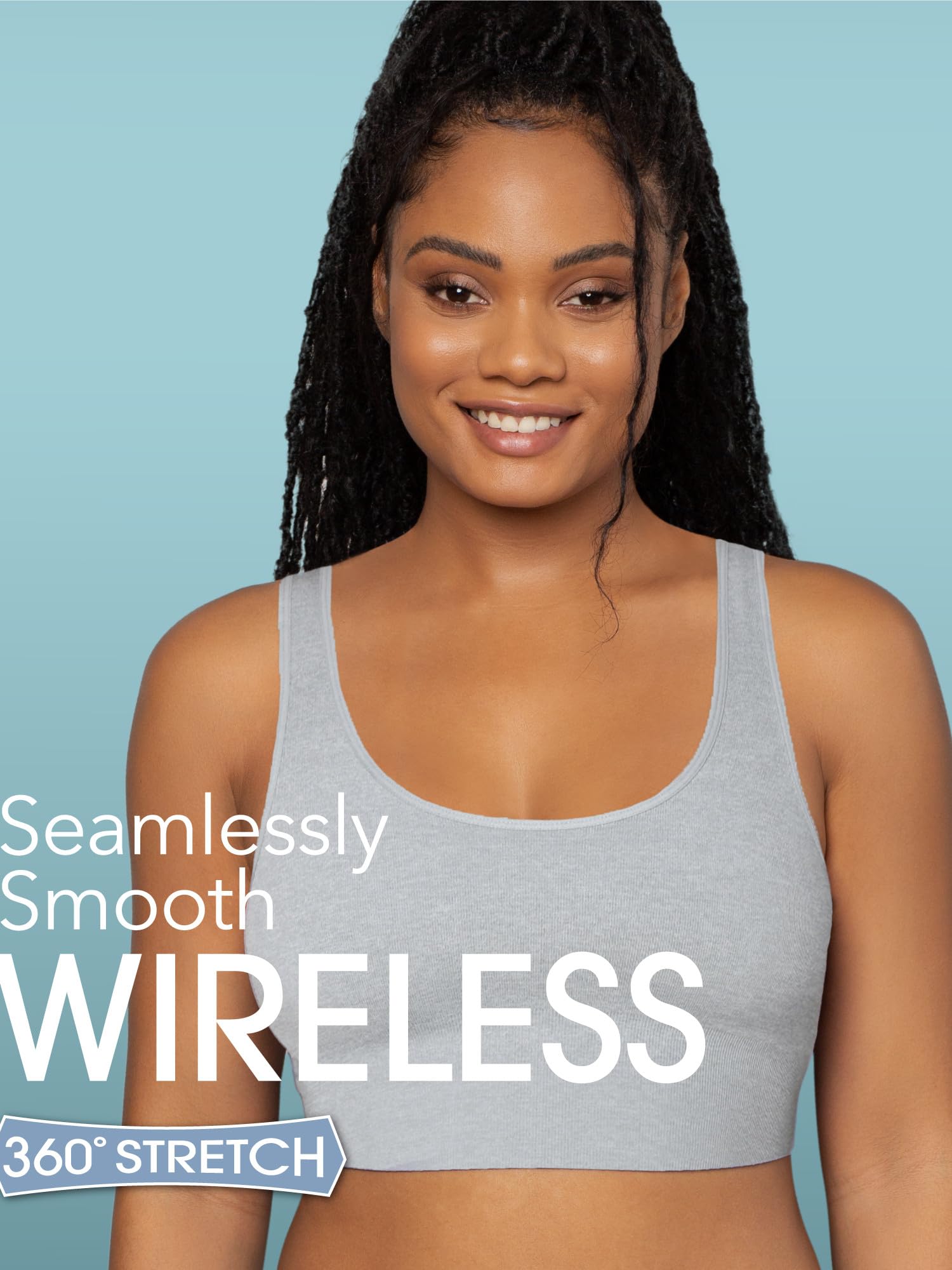 Description So soft, so comfy, so smooth. The Fruit of the Loom 360 Stretch Seamless Comfort Longline Bralettes are perfect for low/medium activities and even better for everyday wear. Comfort stretch, fabric shapes to fit you. Support comes from the double-lined smoothing, ultra-wide wings and longline design. The perfect under outfit bra, seamless full coverage bra lays flat under your clothes and longline design allows it to double as a top. Bras for women shouldn't be itchy, so we've designed these tag, seam-free and wirefree! Wide comfort straps evenly distribute weight so that they won't dig-in.