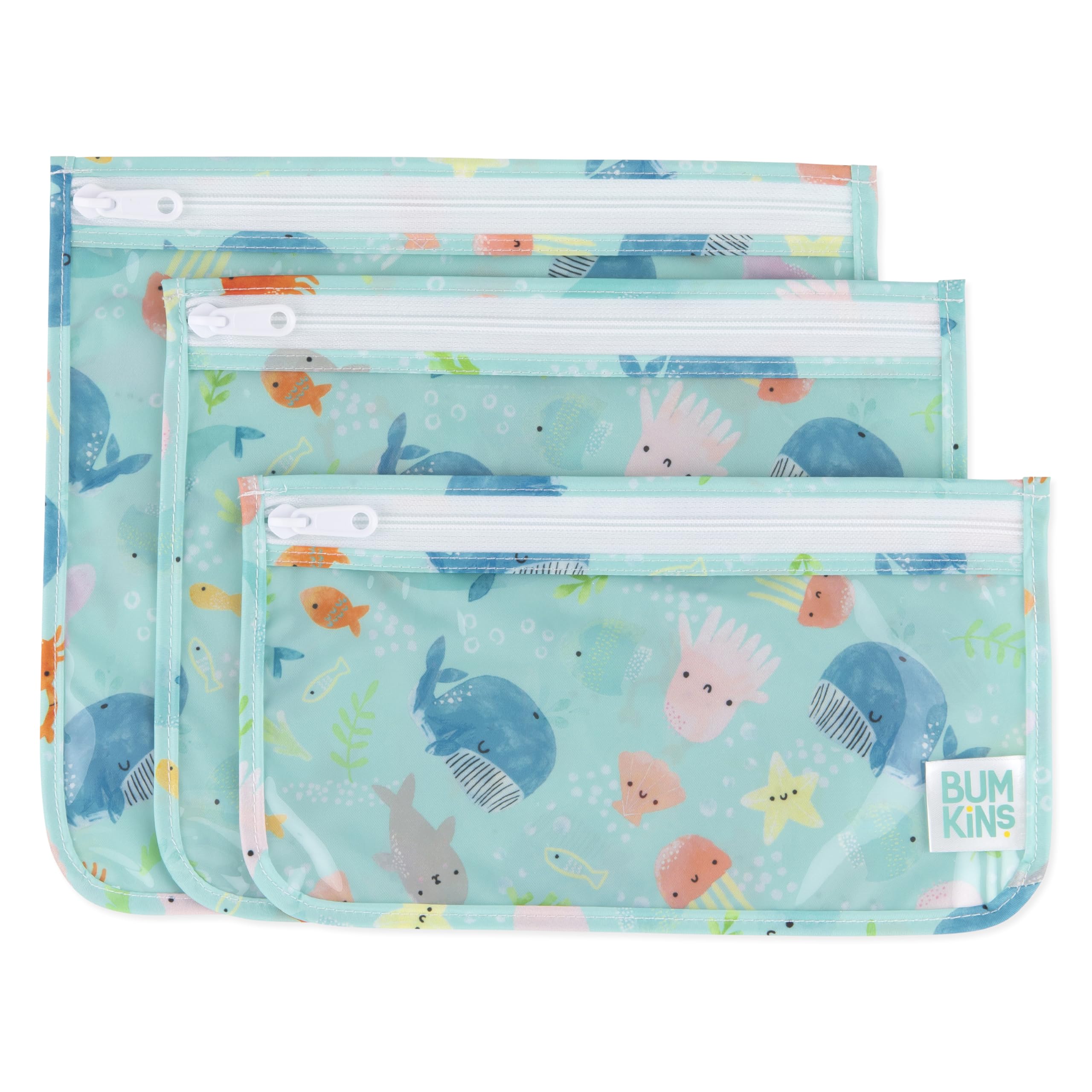REUSE AND REDUCE WASTE – The better alternative to single-use plastic bags; these bags are made from Bumkins' original waterproof fabric that’s both soft and strong, a secure zipper closure; tough enough for daily use