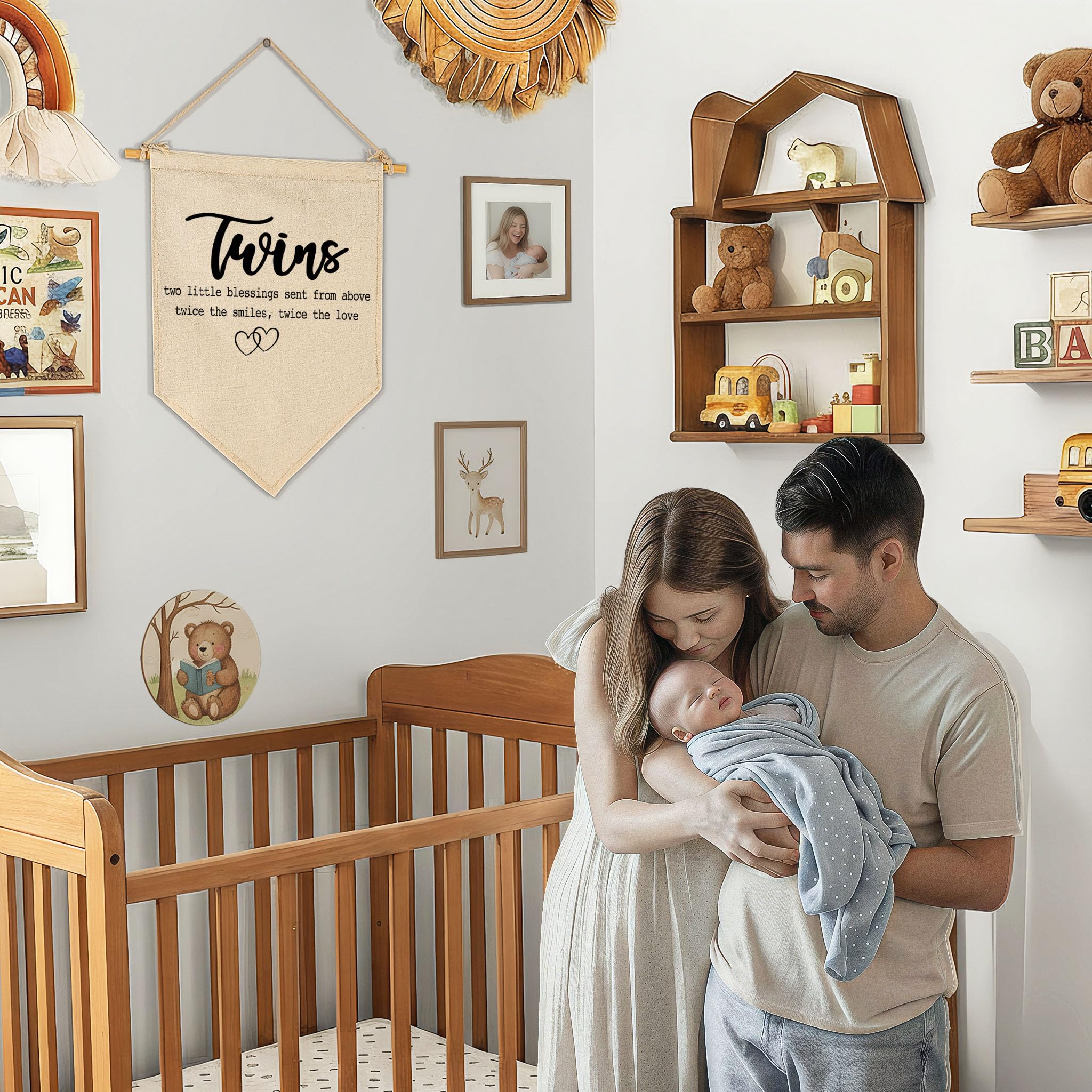 This natural beige cotton canvas banner features inspiring quotes or cute prints that add instant charm to a nursery, baby room, kid’s room, playroom. It hangs neatly with twine and a wooden stick, no assembly required, just open and hang. Durable and beautifully made,it brings a warm, unique touch to any wall decor and makes a thoughtful gift for baby kids, boys and girls, or your friend’s little ones.Perfect for baby shower, birthday,christmas,or any special day