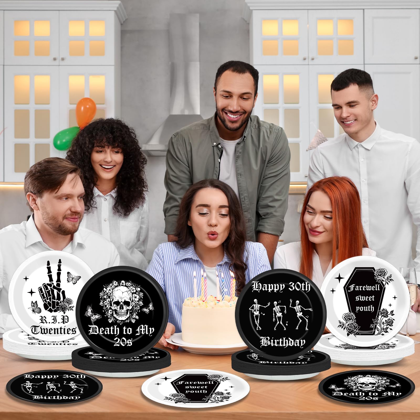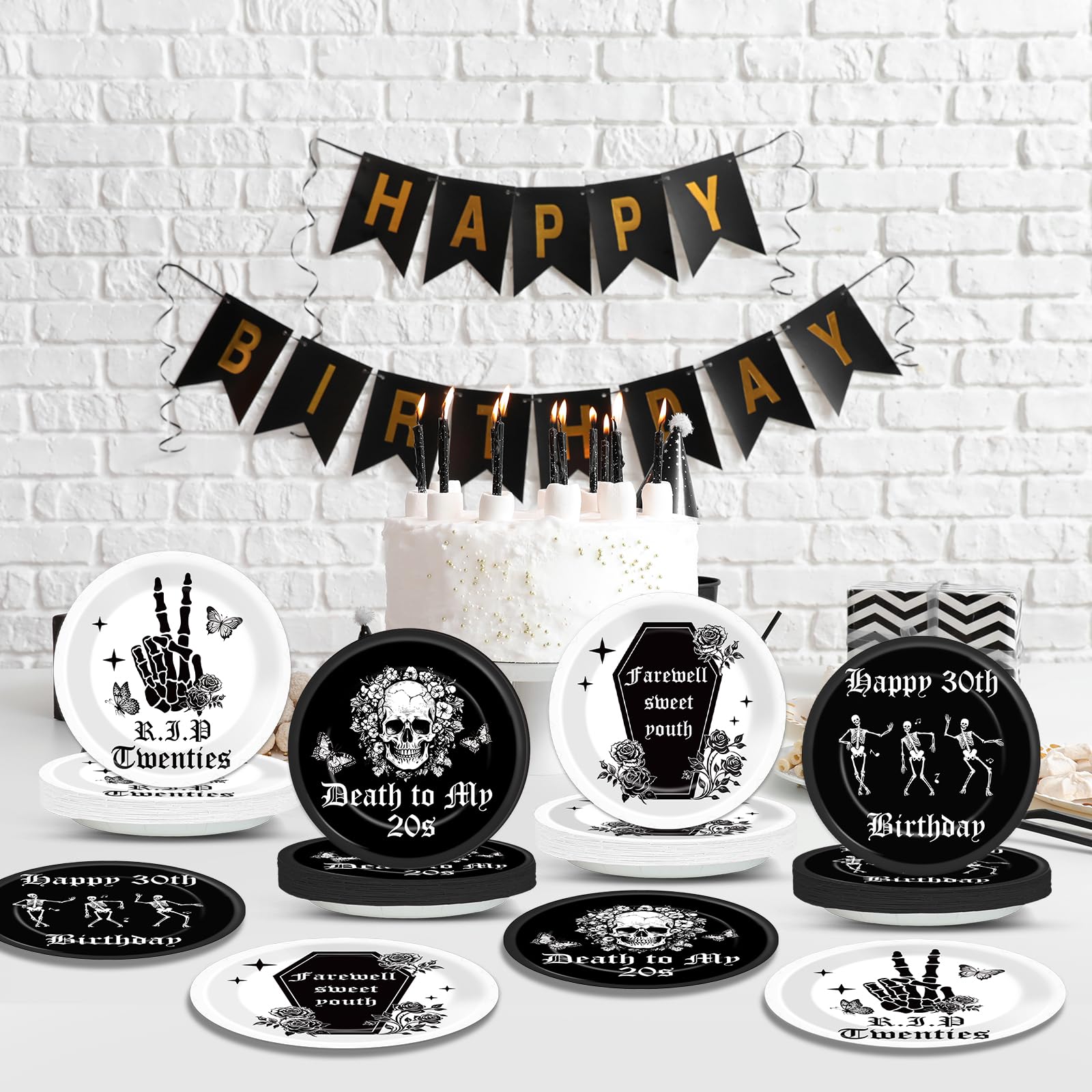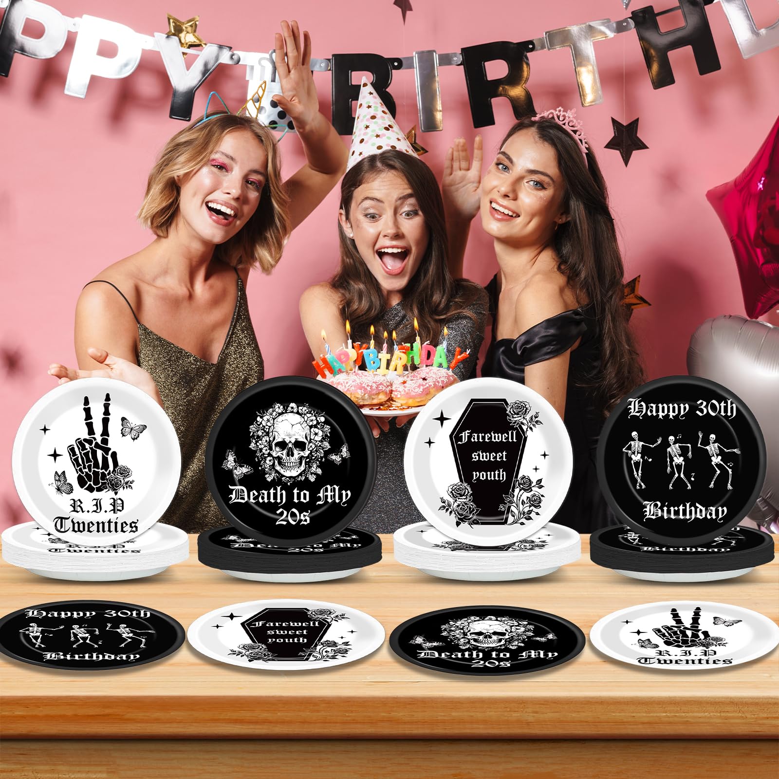 Package contents: A total of 48pcs for this gothic death to my 20s party plates set, including death to my 20s paper plates in 4 different styles and 12pcs for each, ensures that you have enough 30th birthday party supplies to create a great cheerful party atmosphere that will leave a lasting impression.