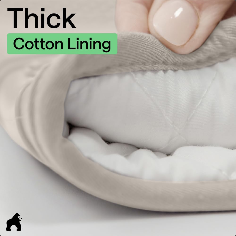 THICK COTTON LINING THROUGHOUT: stay comfortable while you cook; soft cotton lining offers additional protection and comfort, and feel simply amazing; plus, silicone is flexible and conforms easily to your unique grip
