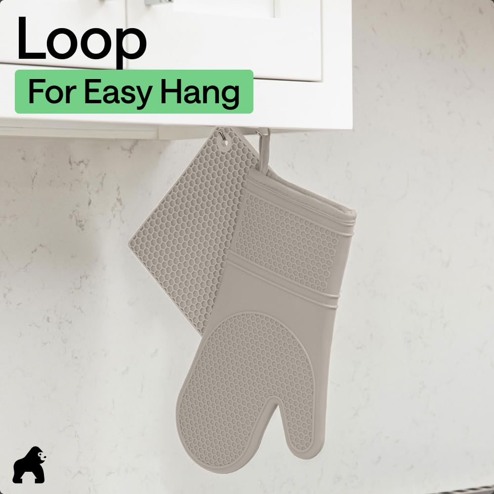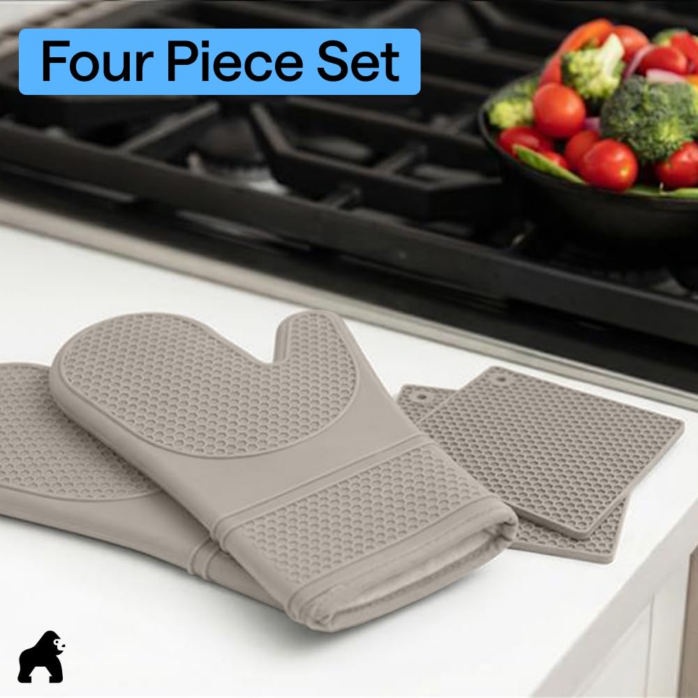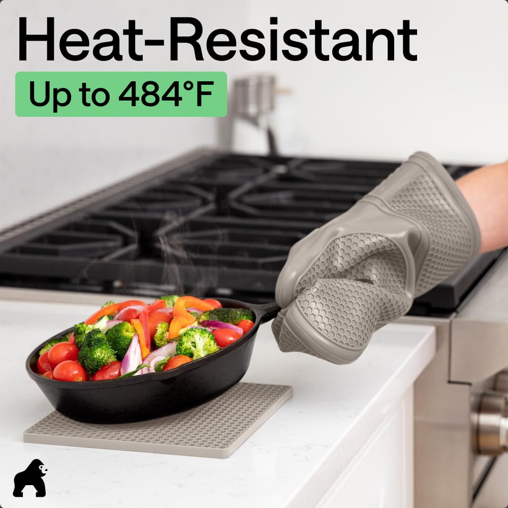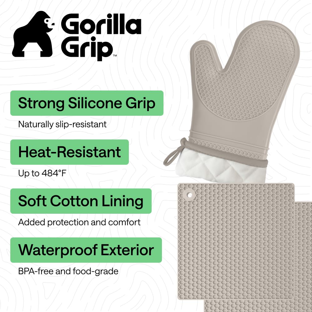 WATERPROOF AND STAIN RESISTANT: no more constantly stained oven mitts and trivets; Gorilla Grip Silicone Mitts and Trivets are both stain resistant and waterproof; spills can easily and instantly be rinsed away under water; hot liquids won’t soak through and scald your skin as they would with other materials; trivets are also dishwasher safe