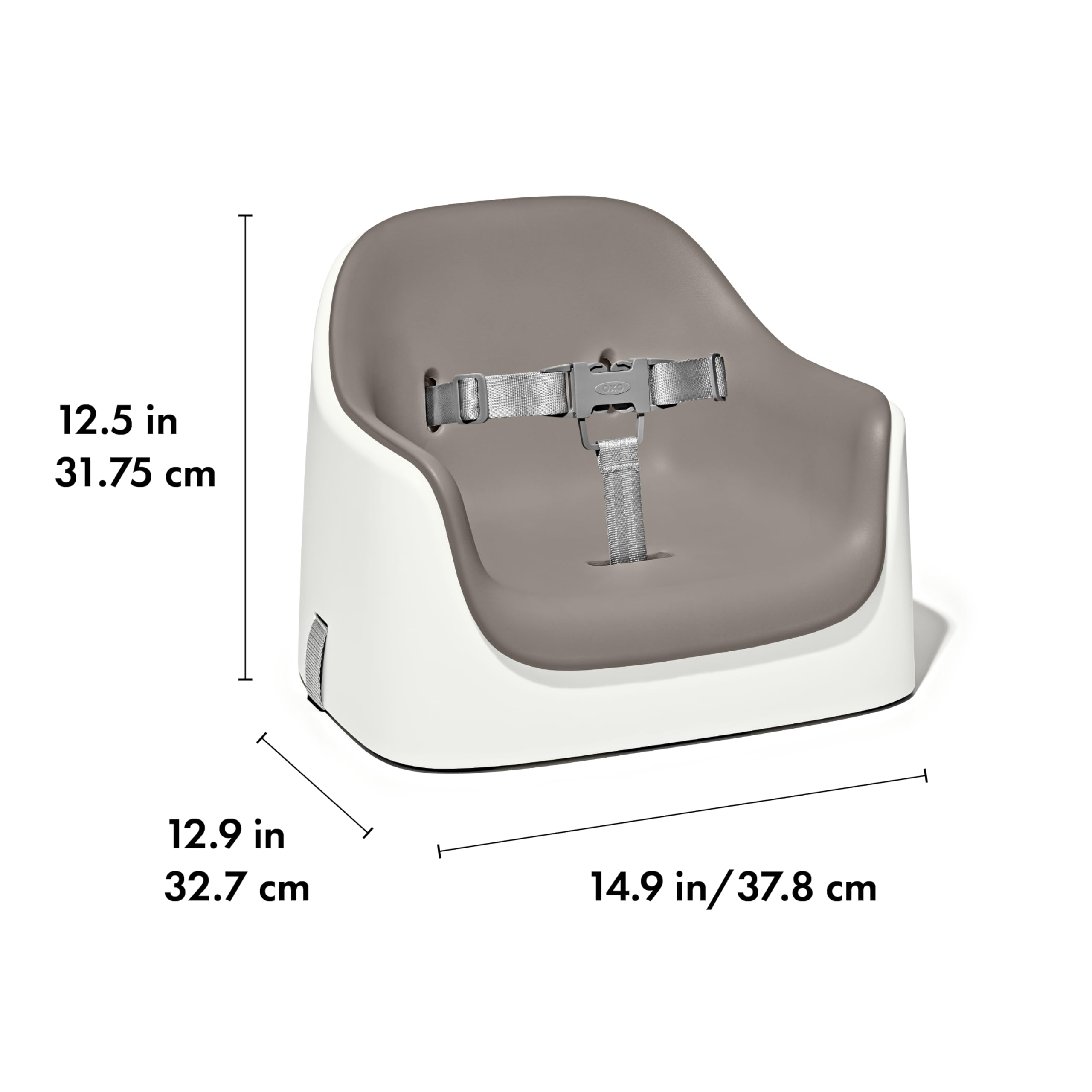 The OXO Tot Nest Booster Seat gives kids as young as nine months a secure seat at the family table. With a soft, removable cushion and high back and sides, the Nest Booster transforms any grown-up chair into a child-friendly seat. Two side-release buckles keep kids securely strapped in (and prevent them from escaping!). The back and bottom chair straps are adjustable for a secure fit on different chair styles and sizes, and the non-slip feet keep the Booster Seat stable while protecting chairs from scratches. The 3-point harness keeps even the wiggliest tot secure and adjusts as your child grows. The built-in handle allows for easy transport, and the straps store neatly in a compartment under the Booster Seat when not in use.