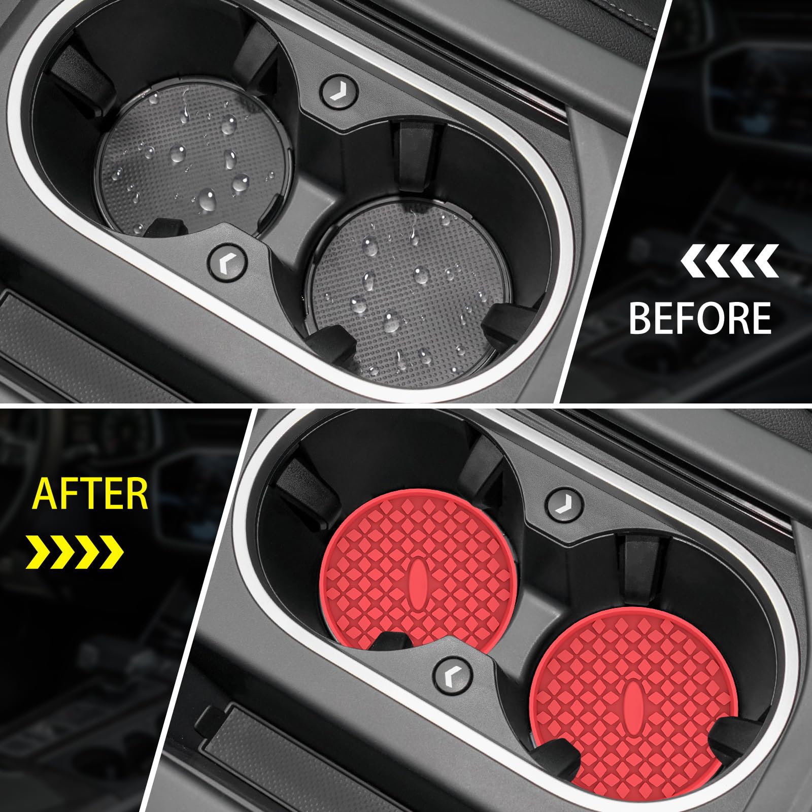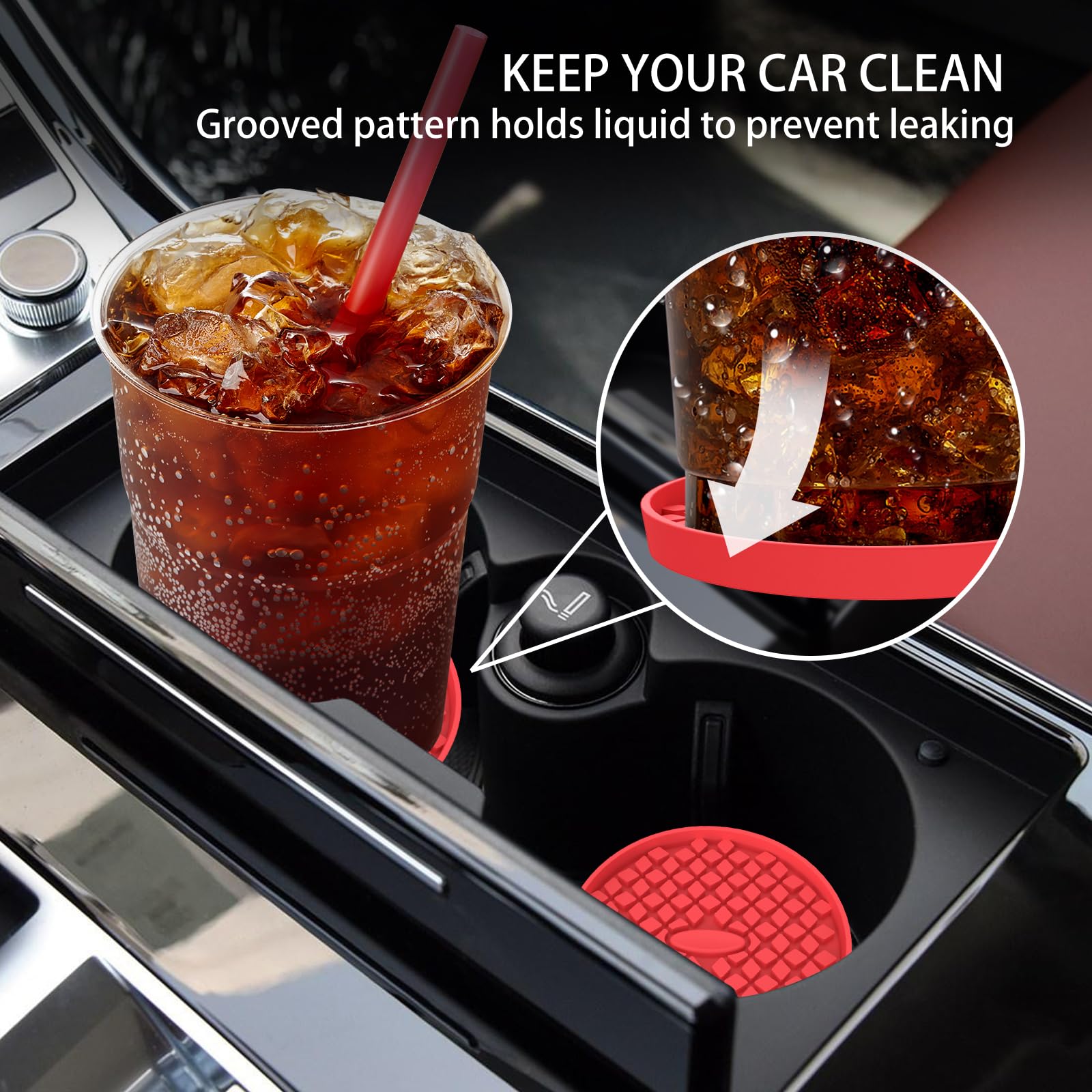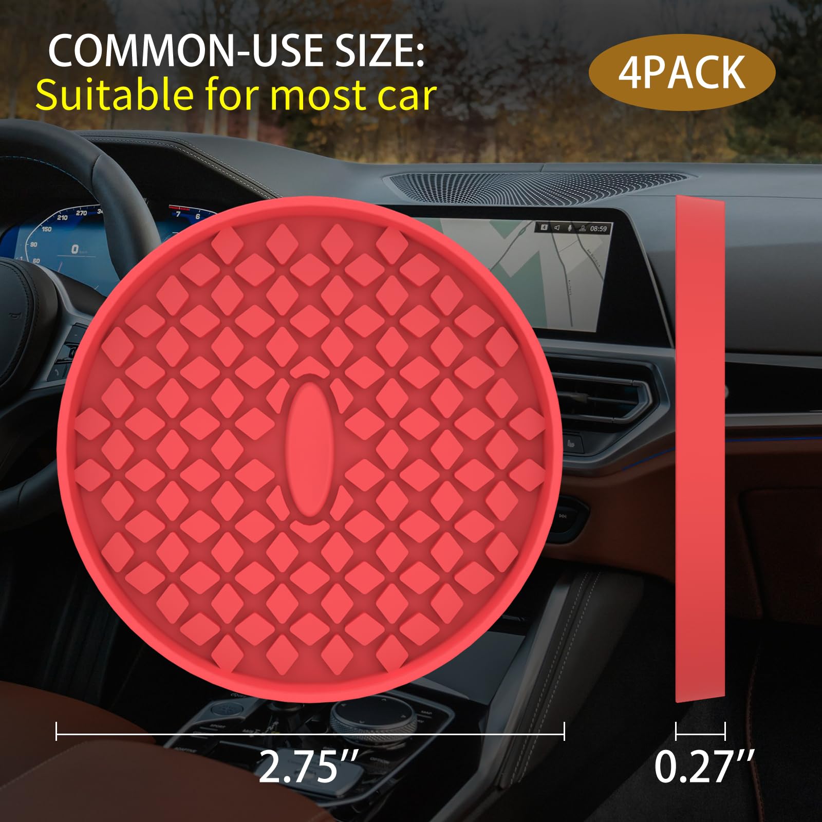 FIT MOST CAR CUP HOLDER SIZE: The thickening car cup coaster's thickness is 0.27'', the deep hem design can hold more overflow of water, juice and liquor from the cup. Diameter: 2.75'', which is suitable for most car cup holder applications. [ Please measure your car's cup slot size before purchasing, to avoid the size error to bring you trouble. ]