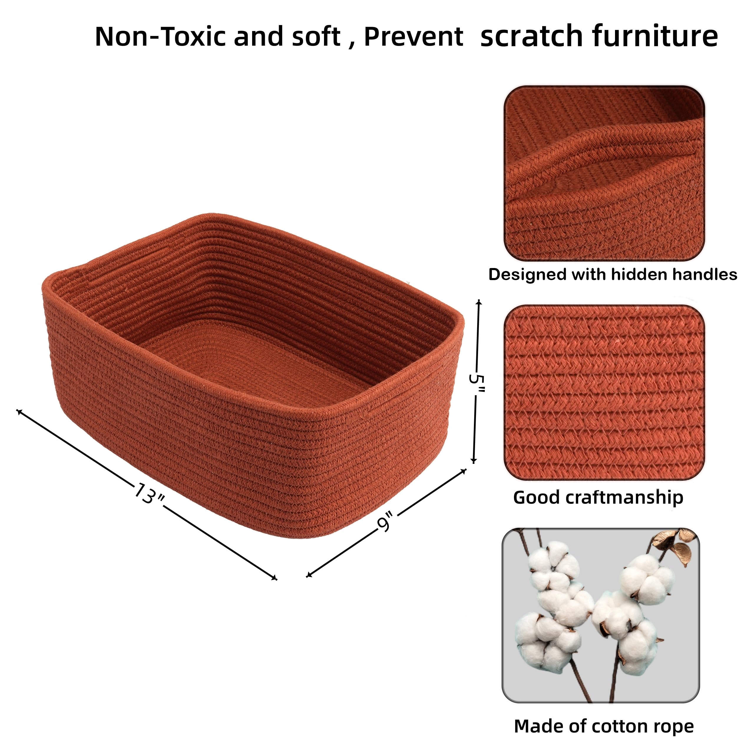Compact Size, Maximum Efficiency: Measuring 13 x 9 x 5 inches, these woven baskets are perfect for tidying up small spaces. Ideal for shelves, pantries, nightstands, and desks, their rectangular shape provides 15% more storage compared to oval bins. This 3-pack offers plenty of room to organize your essentials.