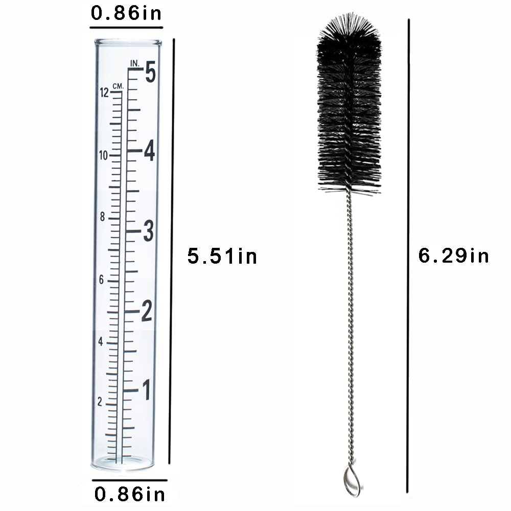 Package Include - 8 pcs 5 inch glass rain gauge replacement tubes and 2 Extra Tube Brush for tube cleaning.