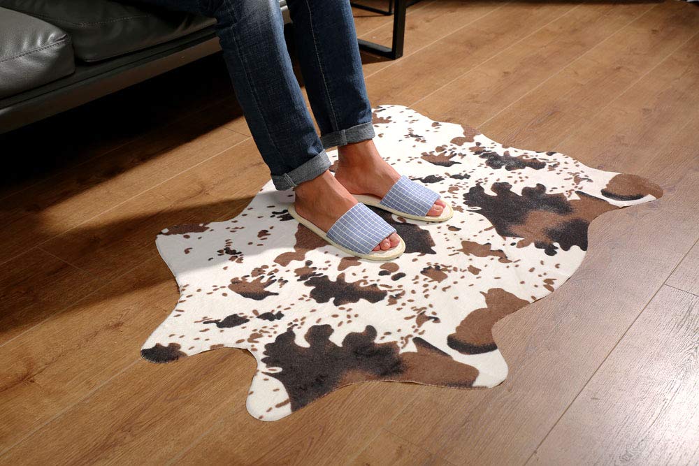 This rug is very stylish and super soft. although this obviously isn't authentic hide, it makes the room look fantastic