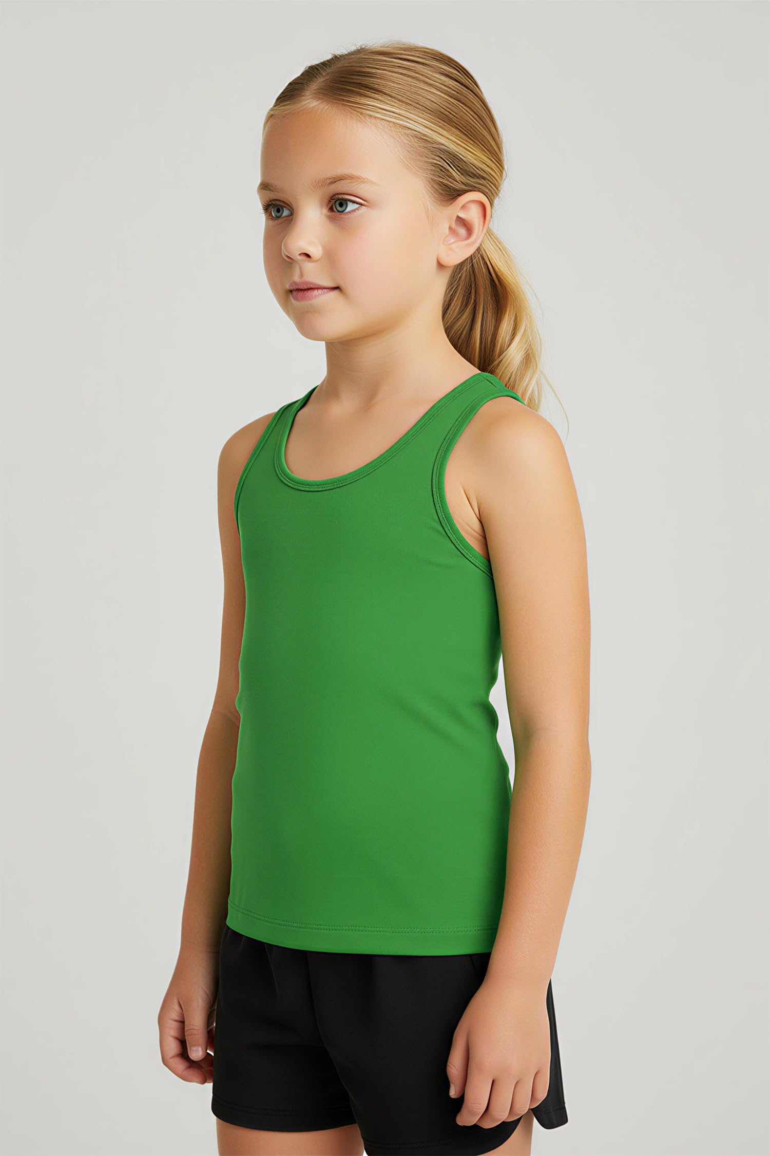 FASHION DESIGN - This affordable, high-quality racerback tank is a must-have fashion basic for stylish girls. With a classic crewneck, this versatile camisole can be paired with anything. The sleeveless design ensures that your kids’ arms won’t be restricted in any way. This slim fitting tank hugs your upper body and goes on your body like a second skin, which ensures that it doesn’t show when layered underneath other tops.