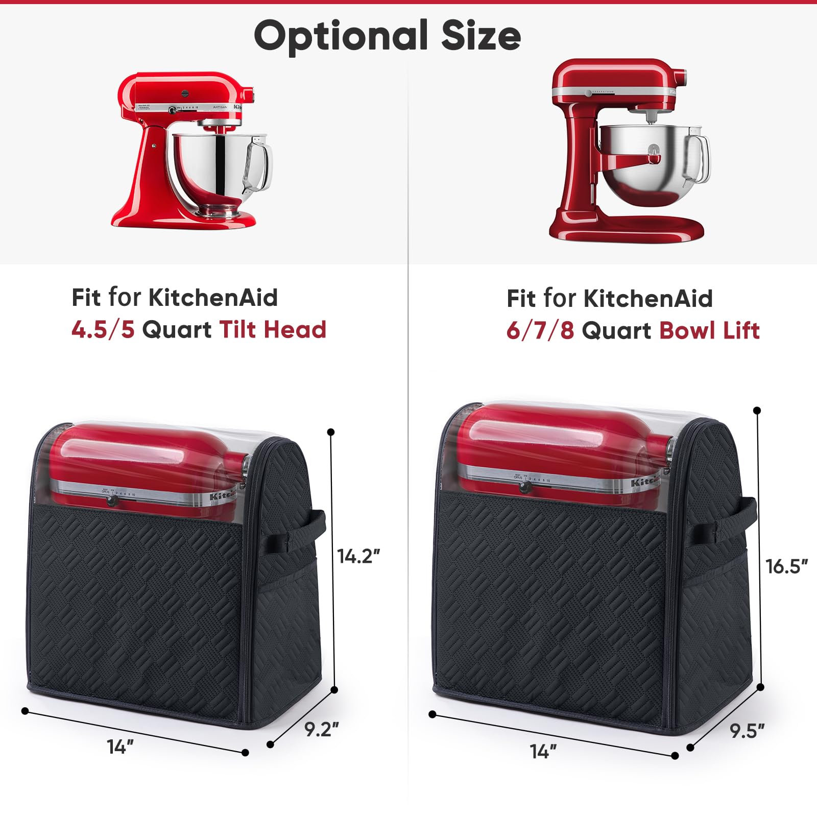 ✅ Fits for Multiple KitchenAid Models ( Available in 2 sizes) Small: Fits for KitchenAid 4.5–5 Qt Tilt-Head Mixers Large: Fits for KitchenAid 6–8 Qt Bowl-Lift Mixers (including 7 Qt and 8 Qt). Perfect for use with KitchenAd accessories, pasta maker attachments, meat grinder attachments, and more.
