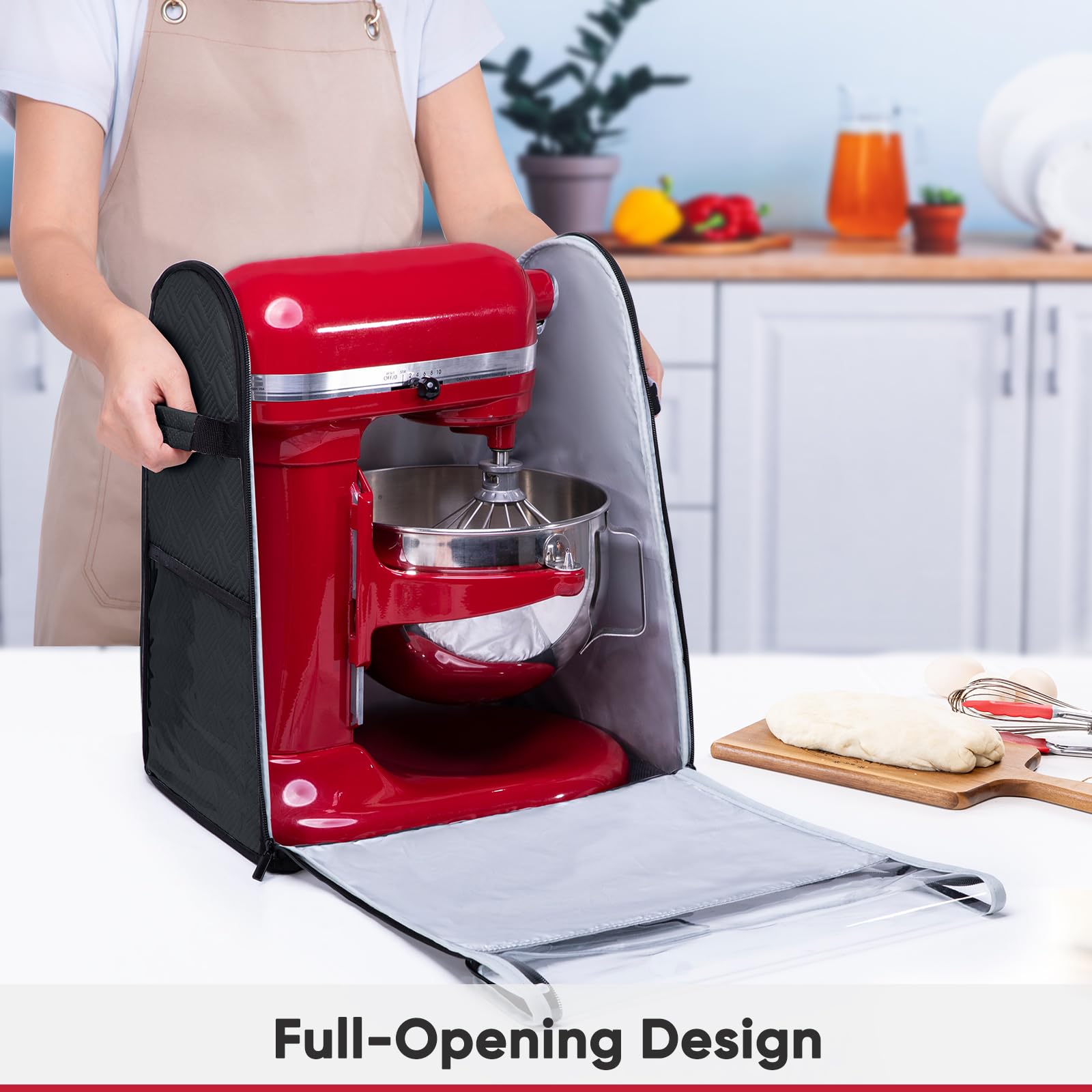 ✅ Convenient Full-Open Design: Designed with top and front zippers for easy access. You can quickly store or remove your KitchenAd stand mixer and attachments, such as dough hooks, whisks, or the ice cream maker attachment.