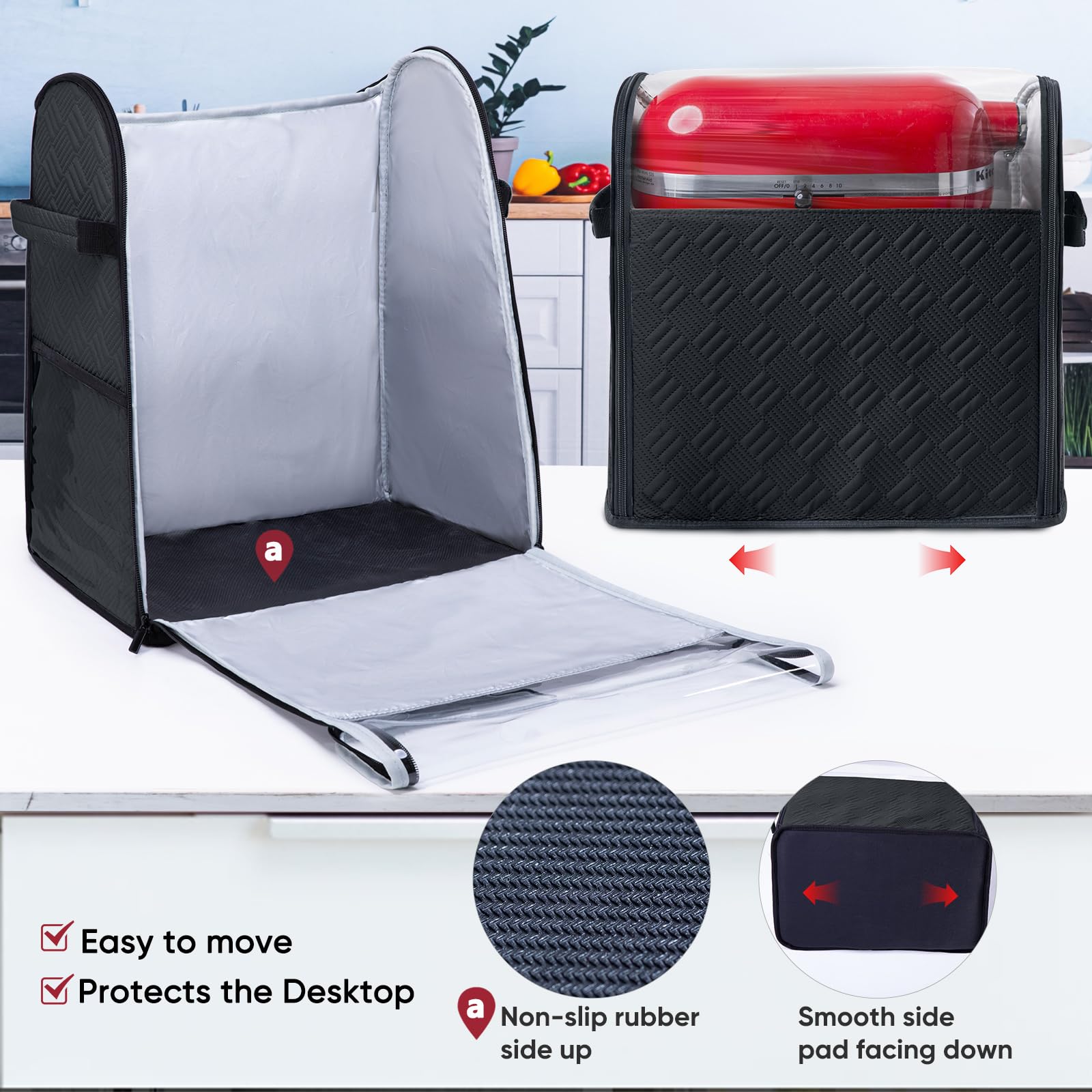 ✅ Complete Protection for Kitchen Appliances: Keep your KitchenA id stand mixer and attachments dust-free and clean. This heavy-duty quilted cover offers full coverage — including the base — perfect for protecting your kitchen aid accessories, bowls, and tools from dirt, spills, and ants.