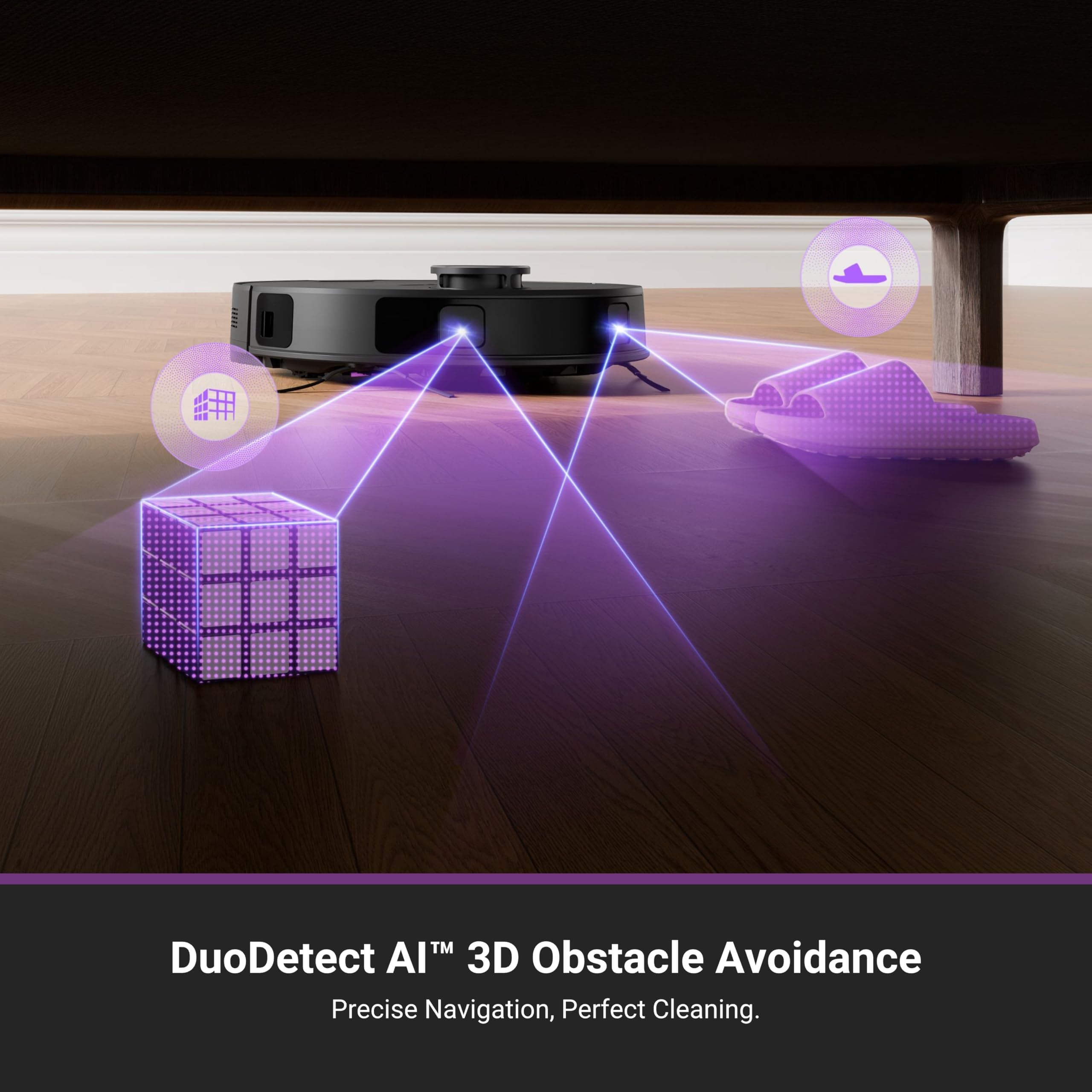 DuoDetect AI 3D Obstacle Avoidance: Utilizes dual LiDAR sensors for precise navigation, avoiding obstacles even in low-light conditions.