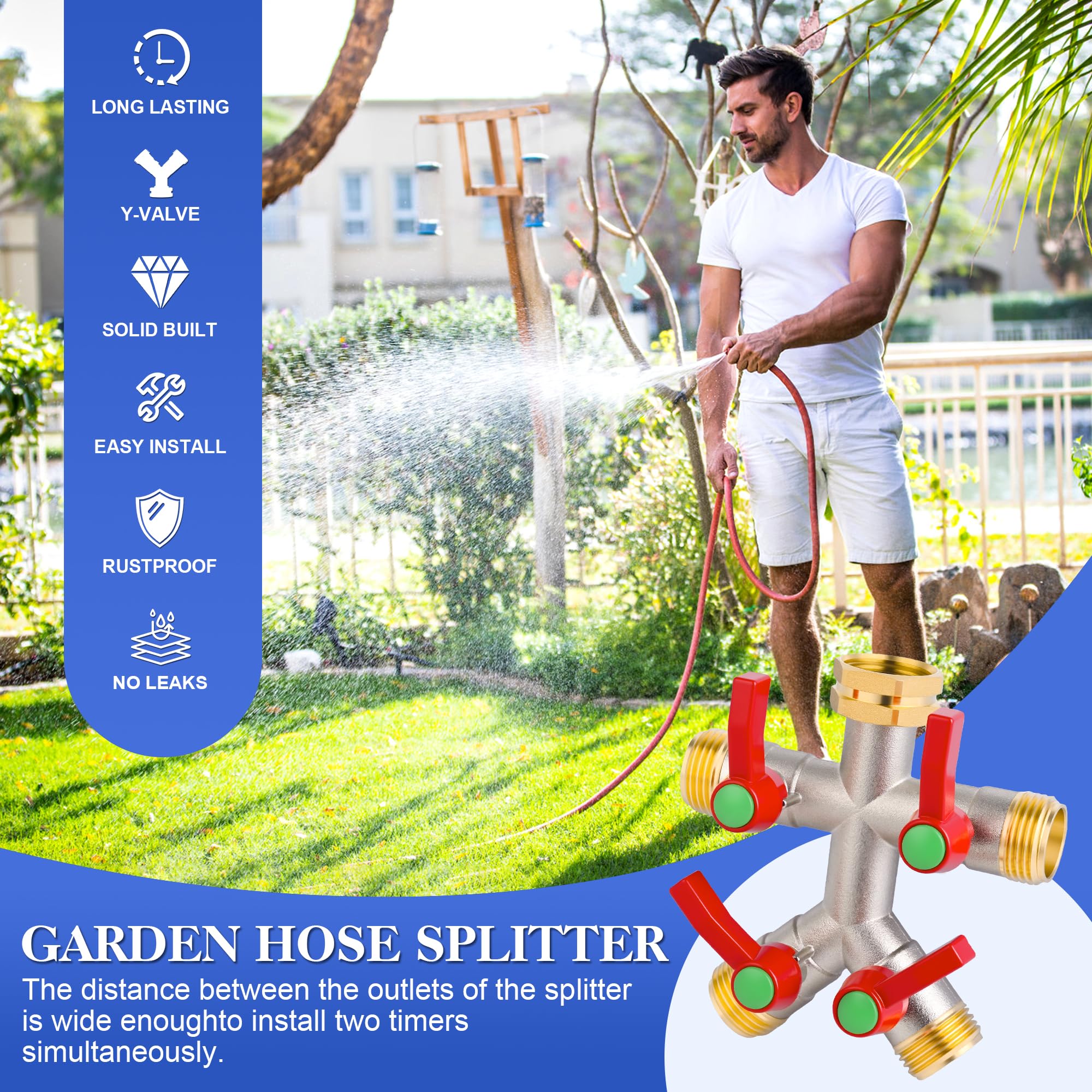【Easy Installation】Garden hose splitter 4 way heavy-duty threaded connection, solid connection, easy to install, can be installed manually without tools, girls can also be installed independently; when the outdoor faucet splitter is connected to the faucet, just rotate the splitter, it can be installed securely.