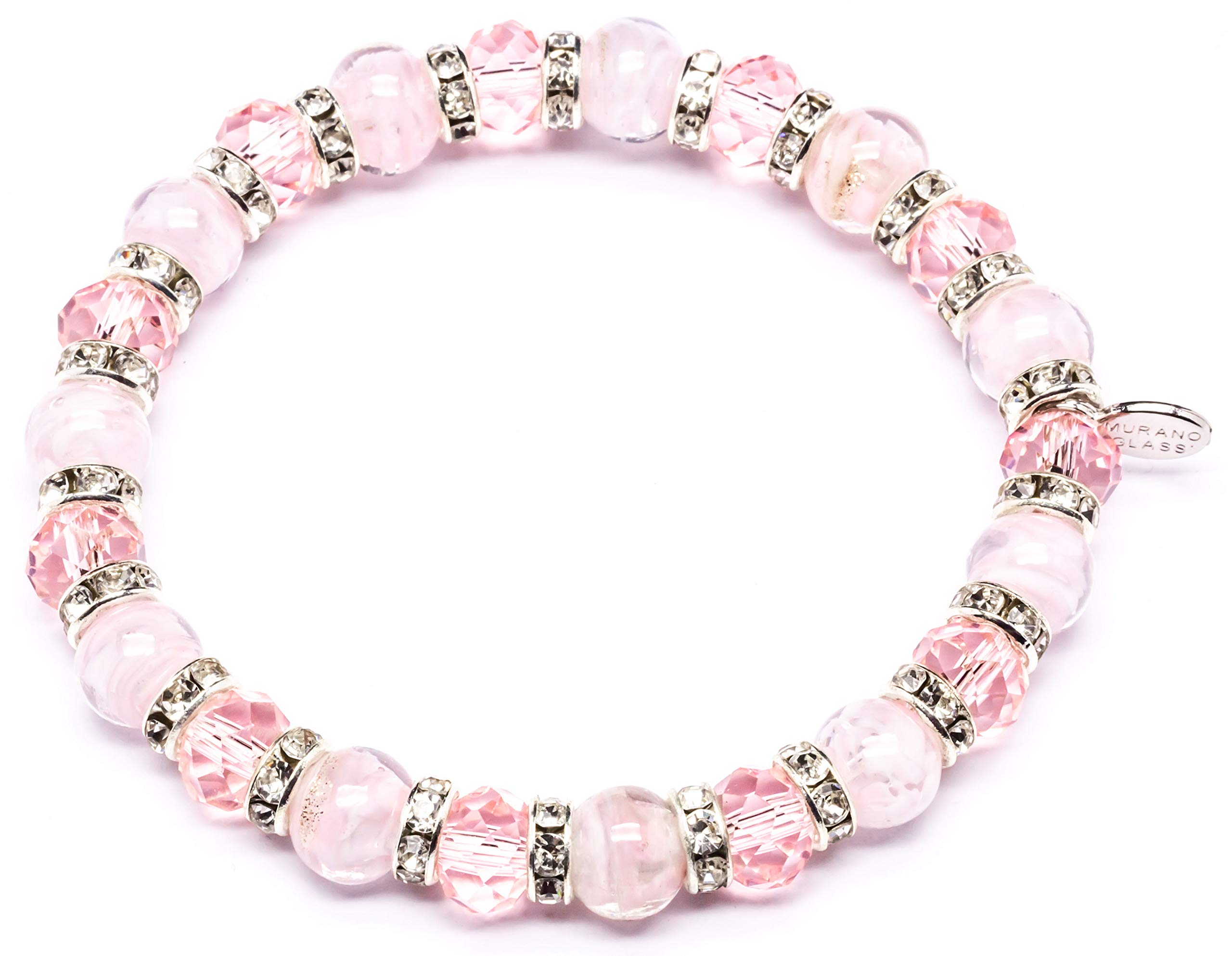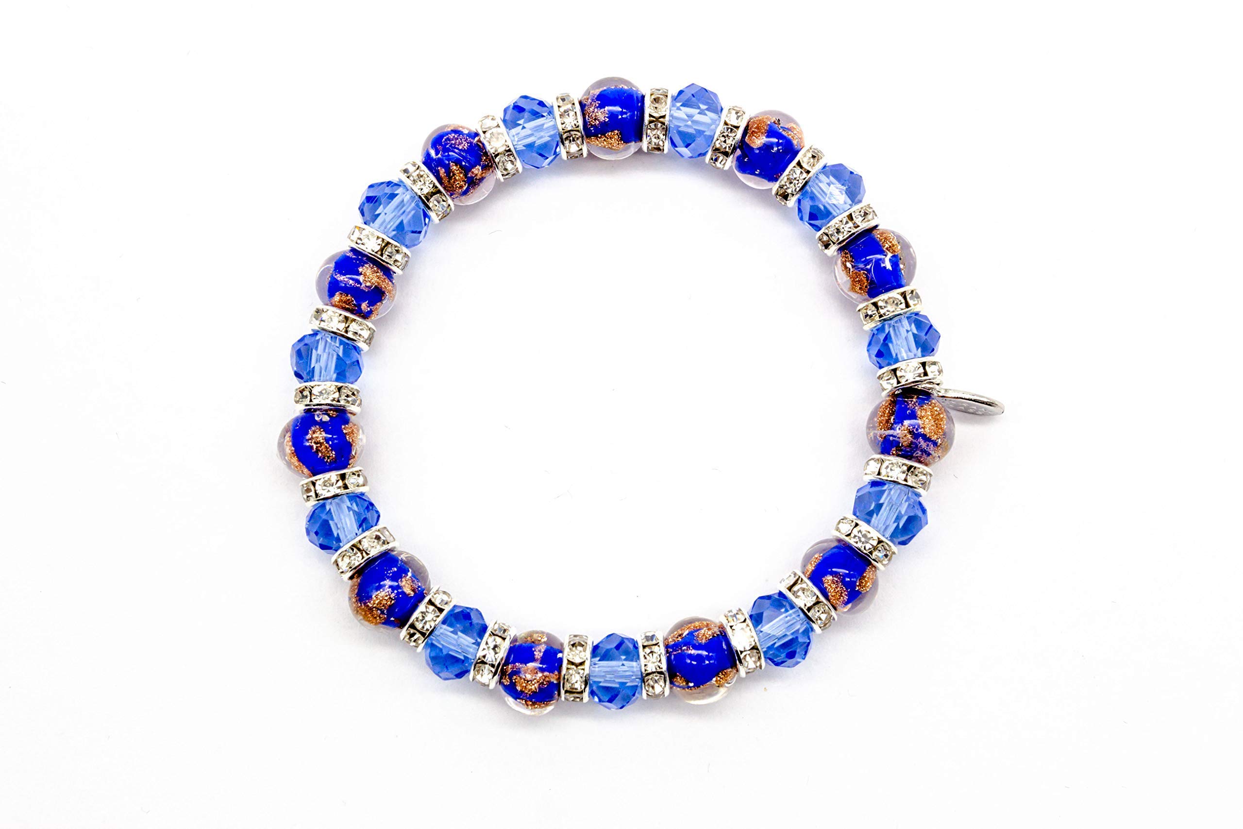 Description Murano Glass Elastic Bracelet. High quality, handcrafted by our glass masters in a special design! Enjoy the beauty of authentic Murano Glass The beads are handmade over a torch and subject to slight variations. The process of creating unique items from Murano glass has stayed in a traditional form for many centuries and the secrets of the glassblower profession transmitted from father to son. The name comes from the Murano island in the Venetian lagoon, where all the workshops were transferred by the end of thirteenth century. Our collection includes some of the finest examples of Murano glass jewelry, handmade in Venice by expert artisans. This is a unique accessory that will brighten up your look and your day. ✔️ The product is well packed for shipping and safe for damages. If there are problems i will refund all amount. ✔️ Size of the beads is 8mm ✔️ Bracelet measures approximately 2 1/4 inches internal diameter (Size is adjustable) ✔️ From Venice with love!