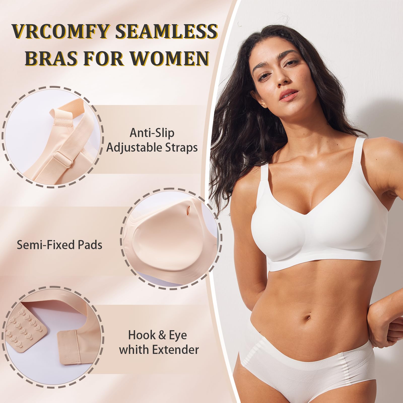 【Go Seamlessly Invisible with the VRCOMFY Jelly Wireless Bra】Go seamlessly invisible with the VRCOMFY Jelly Wireless Bra. This incredibly soft, wire-free bra features removable pads that provide just the right amount of shaping without adding bulk. The stretchy seamless material hugs your curves comfortably, prevents back bulges, and stays hidden under even the thinnest fabrics. Enjoy a sleek, smooth look in any outfit.