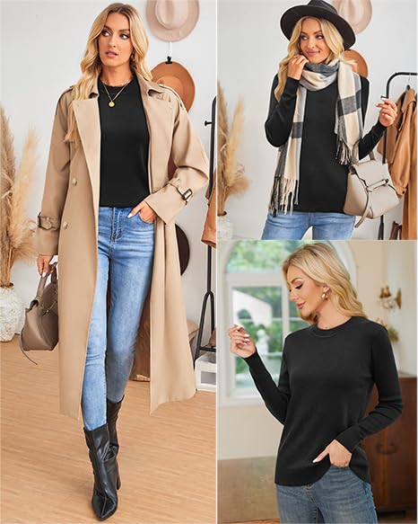 Features: Women's Fall Tops/ Long Sleeve/ Crew Neck/ Loose Fit/ Business/ Winter Layering/ Elasticated Hem/ Solid Color/ Pullover Sweater