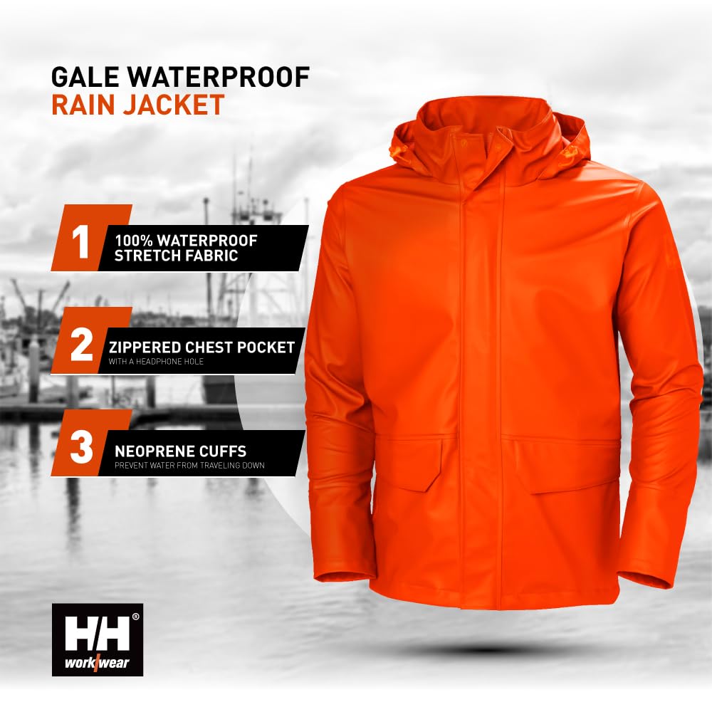 Professional Rain Jacket: The Helly-Hansen Gale Rain Jacket provides waterproof protection, ideal for outdoor workers in extreme environments. This men's windbreaker jacket features a PU-coated polyester fabric for enhanced durability