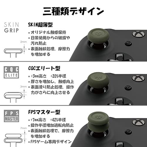 Specification: Compatible with: XBOX ONE, XBOX ONE slim, XBOX ONE X, XSX Controllers, and Elite Controllers Colors: Black, OD Green, Cyberpunk Yellow, Neon Pink, Neon Green Dimensions: CQC 19.5*9.7mm, FPS 19.5*13.7mm Net Weight: CQC 1.6g, FPS 2.3g Package Includes: 1x Pair Skin Grip Thumb Grip 1x Pair CQC Elite Thumb Grip 1x Pair FPS Master Thumb GripNote: When you find thumb grips become greasy, please remove them and clean them with detergent.