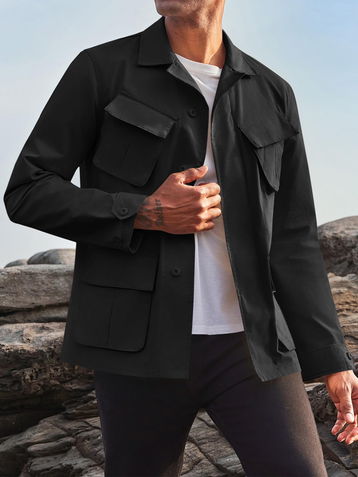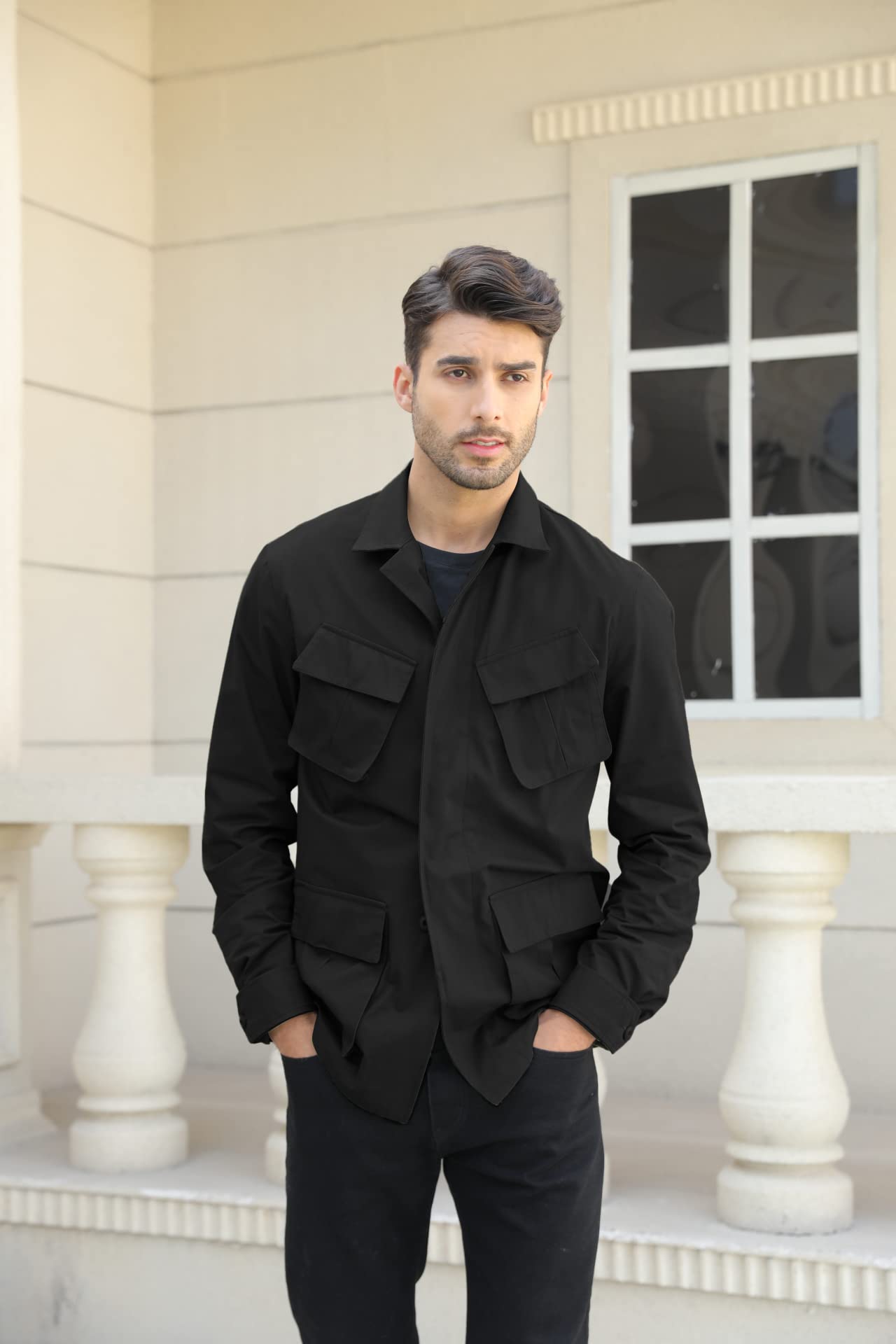 FEATURES:Safari jacket for men, lightweight military windbreaker jacket, pure cotton, solid color, long sleeve, button down, stylish jacket, turn down collar, natural fit, multi pocket. Spring fall winter coats, Casual Jacket, keep fashion and comfortable.