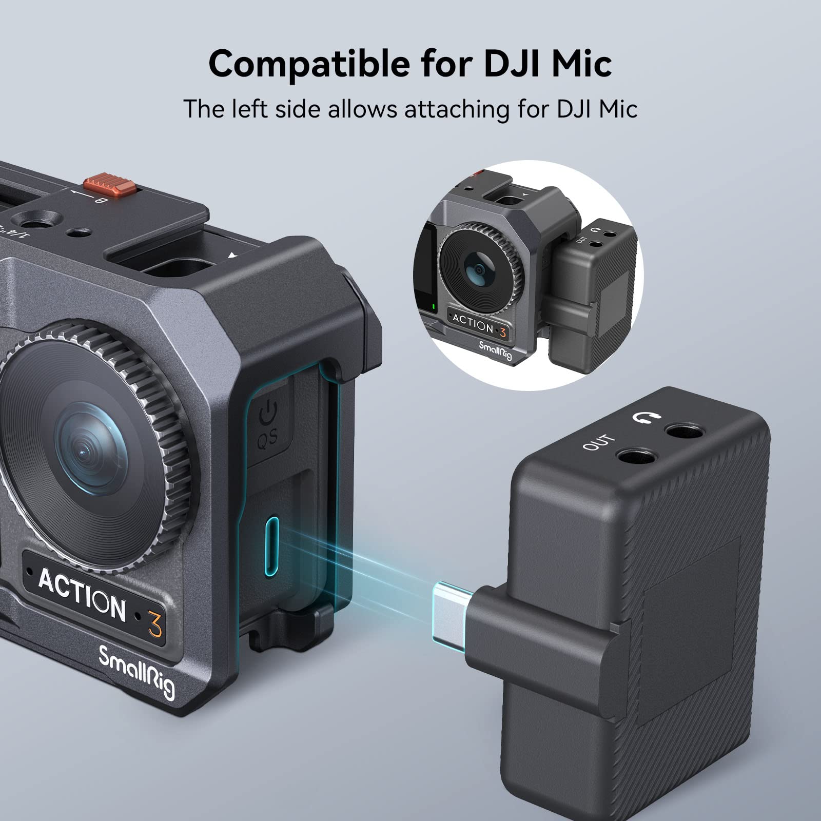 Compatible for DJI Mic & Original Adapter - Attach your Mic for DJI on the left side of the cage. The bottom and right side magnetic mounts support the original magnetic quick-release adapter for DJI or the SmallRig Magnetic Adapter Mount 3662 for effortless switching between horizontal and vertical shooting modes.