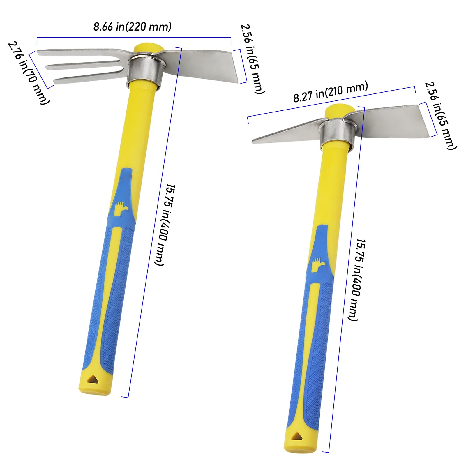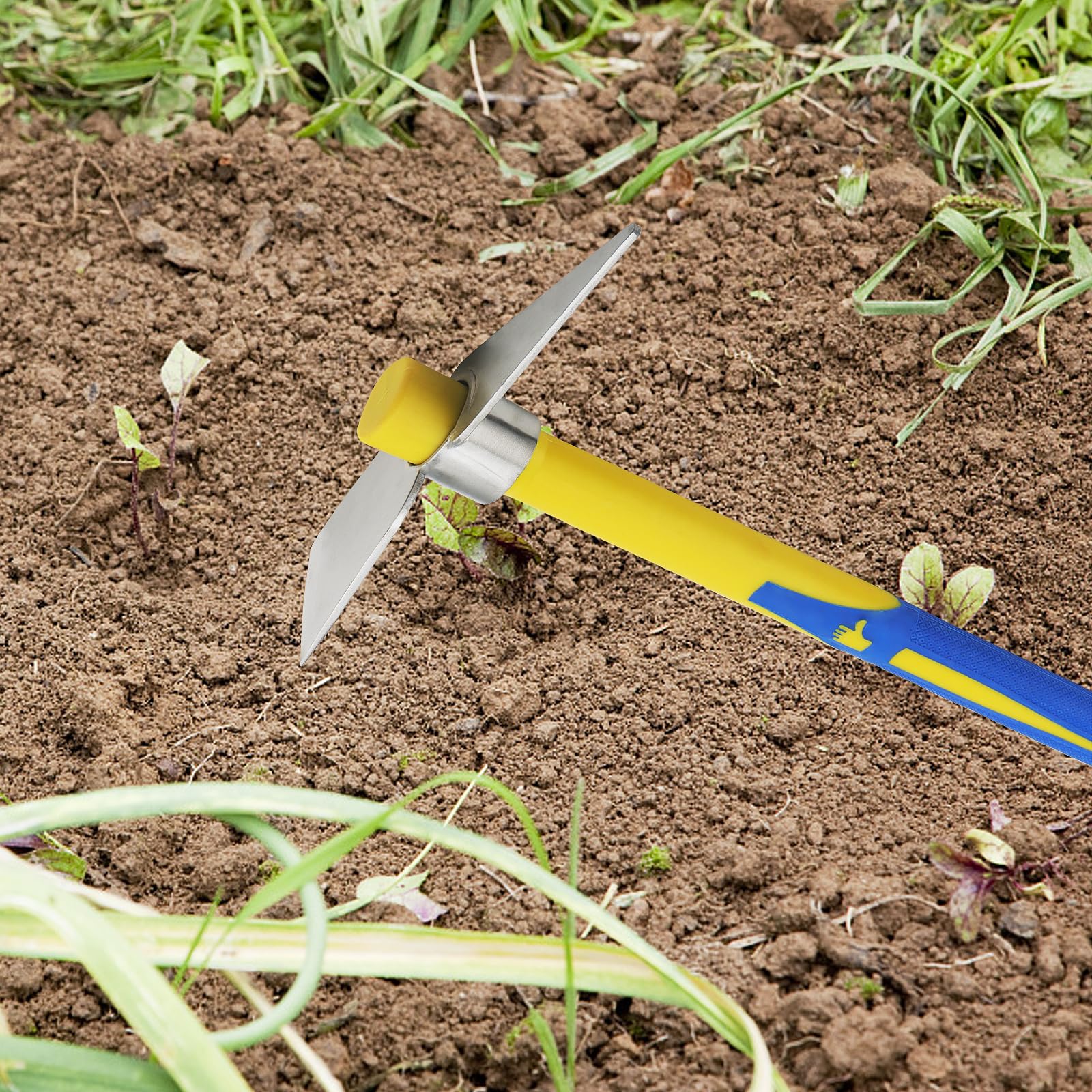 SOLIDLY MADE - These garden tools feature a stainless steel head and a non-slip fiberglass handle, allowing you to break up hard soil and rocks. Light in weight and portable. Perfect for home backyard gardening.