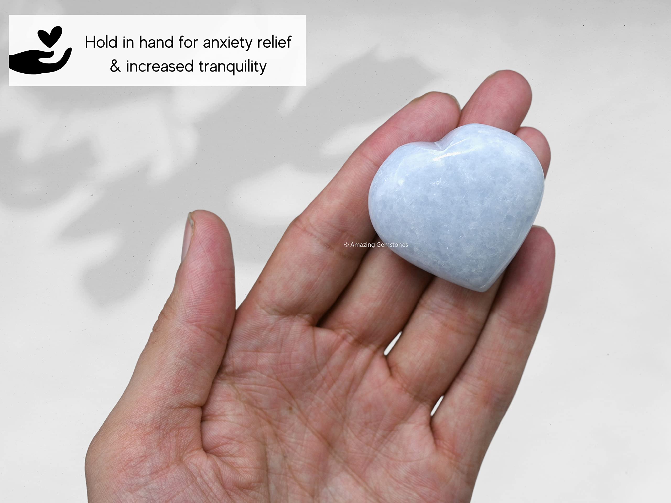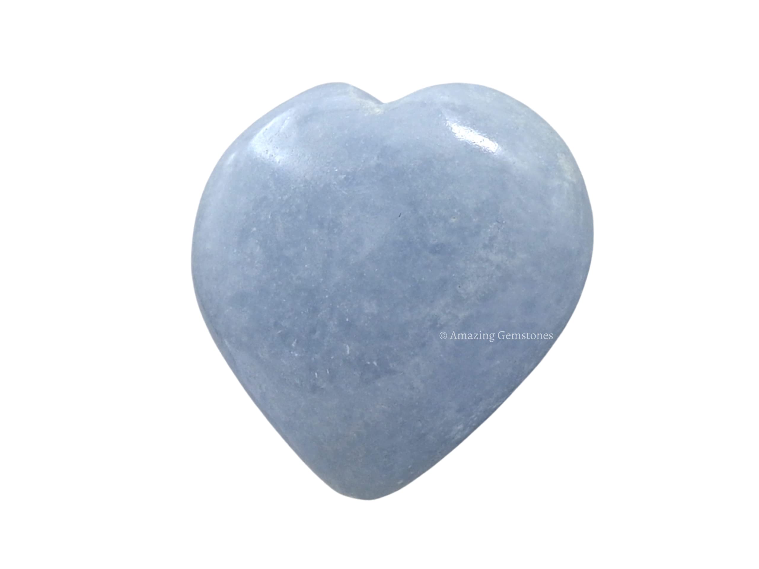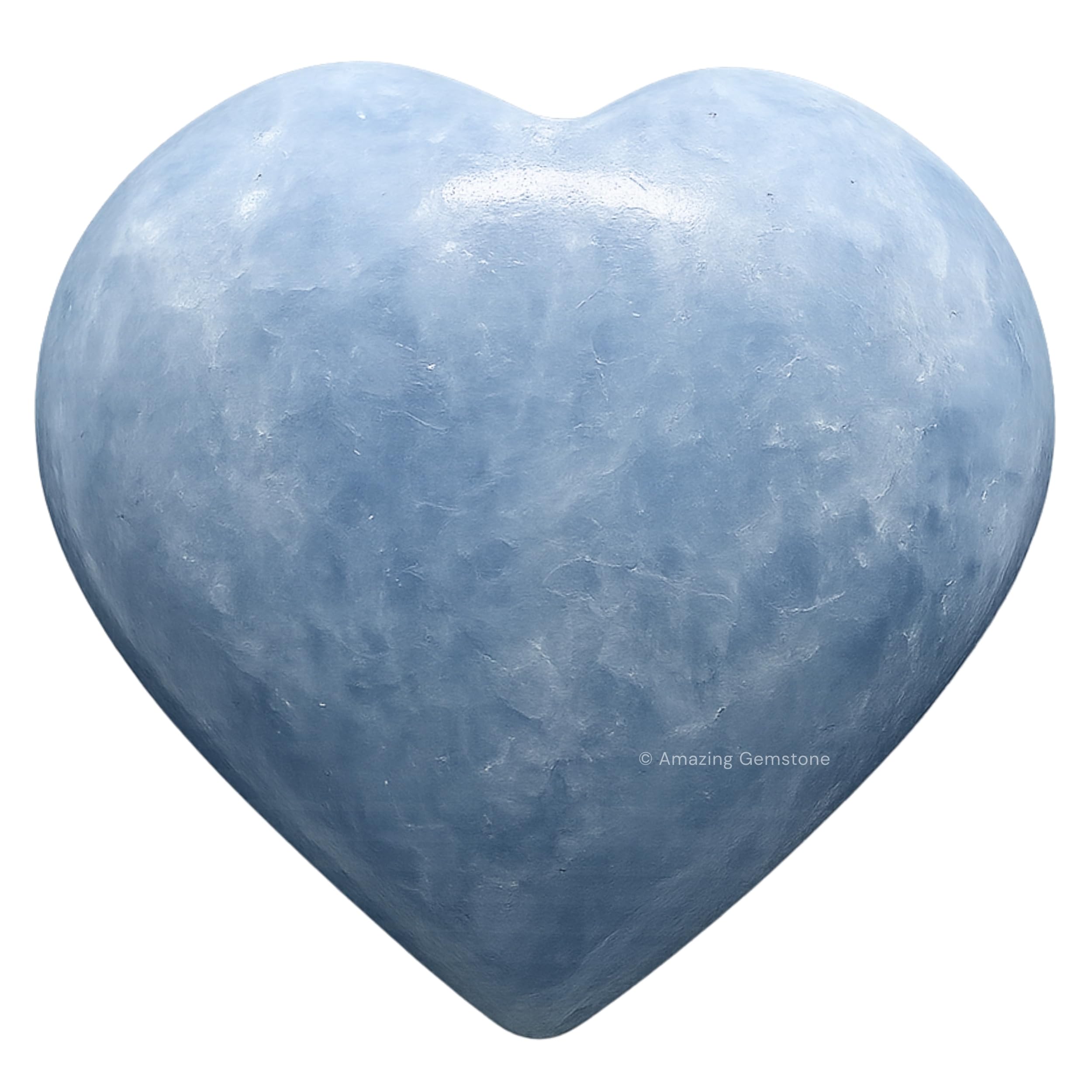 Blue Calcite Celestite Crystal Heart Palm Worry Stones are polished heart shaped stones that can be used for Back, Neck, Face and Feet Massage therapy, Chakra Balancing, Reiki Healing, Crystal Grid Meditation and many other esoteric healing practices.