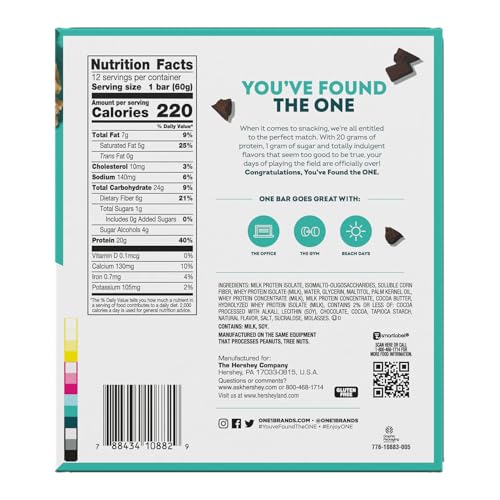 No more sneaking bites out of the mixing bowl � this cookie dough flavored treat comes in a convenient bar ready for snacking! Fuel your workout or your work day with the power of ONE Chocolate Chip Cookie Dough Flavored Protein Bars. Each kosher and gluten free protein bar is packed full of chocolatey flavor complete with 20 grams of protein and 1 gram of sugar. Whether you need a quick option for breakfast or lunch or want a sweet treat after dinner or a tough workout, these protein bars are up to the task. Never be caught empty-handed after a workout again! Stock your pantry, backpack and desk drawer with a handful of ONE protein bars packed full of chocolate chip cookie dough flavor. Grab a bar on your way out of the house, whether you're headed on a hike, to a sports game or just to run some errands. . Feeling generous? Share the love and treat friends, family or even your gym buddy to 20 grams of protein, 1 gram of sugar and delicious flavor with ONE chocolate chip cookie dough flavored gluten free protein bars. No matter where your day takes you, you can tackle it head on with a protein packed ONE bar.