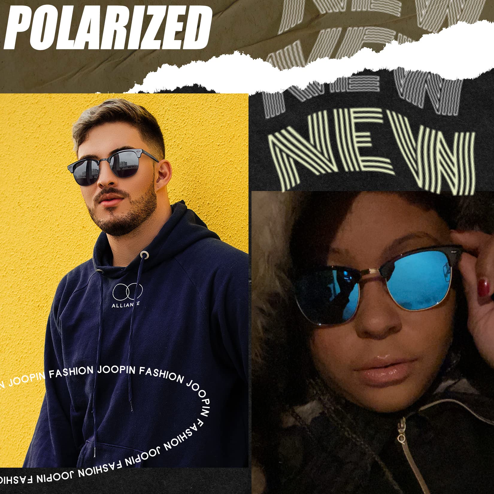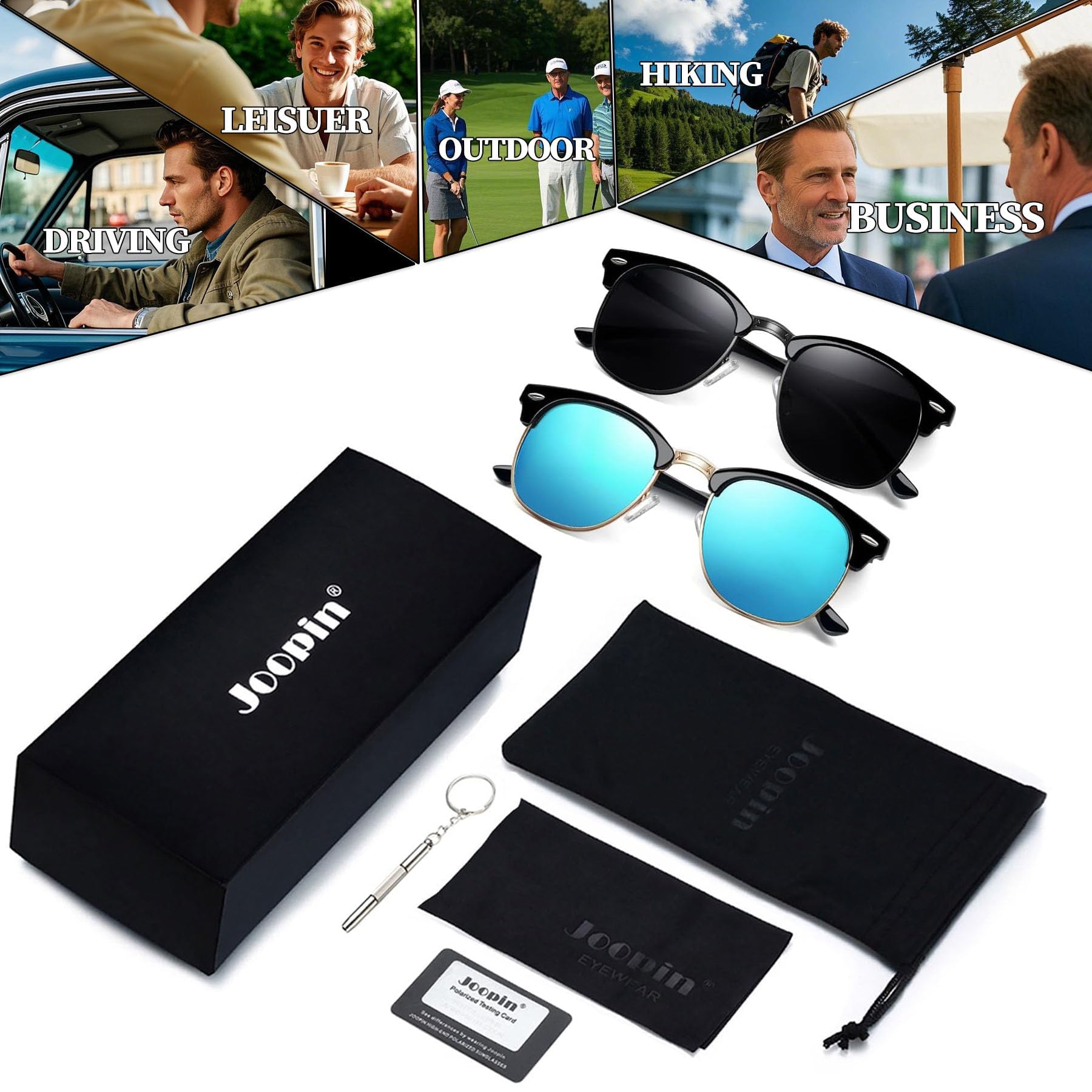 Package Including: All black sunglasses x 1 / blue mirror sunglasses x 1 / soft box x 1/ exquisite bag x 1/lens cloth x 1/ practical screwdriver x 1/ polarized testing card x1. Cute sun glasses are made of polarized UV400 lenses, lightweight metal frames, all the details will bring you an comfortable wearing experience. Joopin focuses on fashion men sunglasses and women sunglasses. Click and get your high-quality and cheap sunglasses now