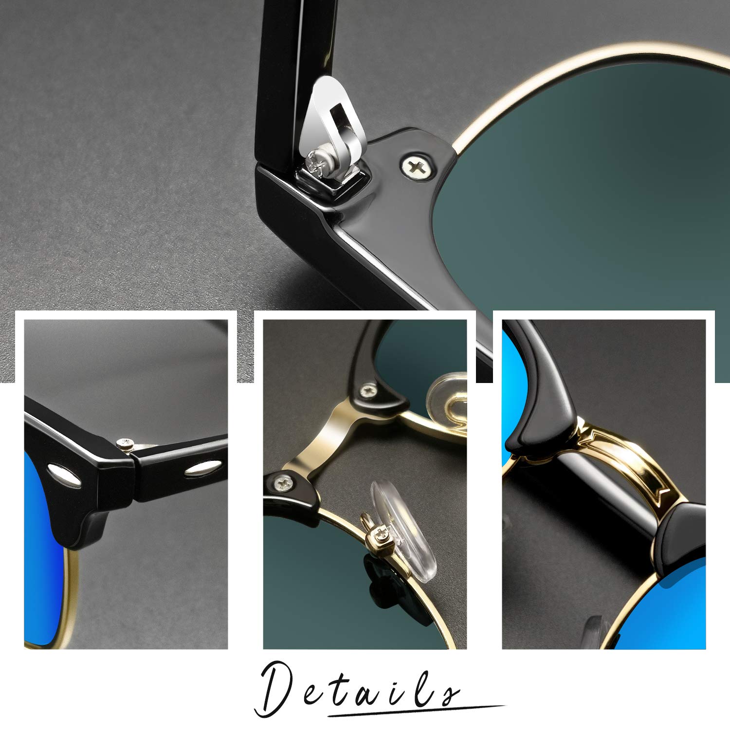 Anti-Glare Polarized Lenses: Adopting the latest 9-layer Polariboost lens technology, horn rimmed sunglasses provide a better eyes protection. Polarized lenses of half rim shades for men women can reduce glare reflected off of roads, bodies of water, snow, and other horizontal surfaces. whether you wear this vintage anti glare sunglasses for driving, walking, shopping, fishing, gardening or other outdoor activities, You will get excellent eye protection