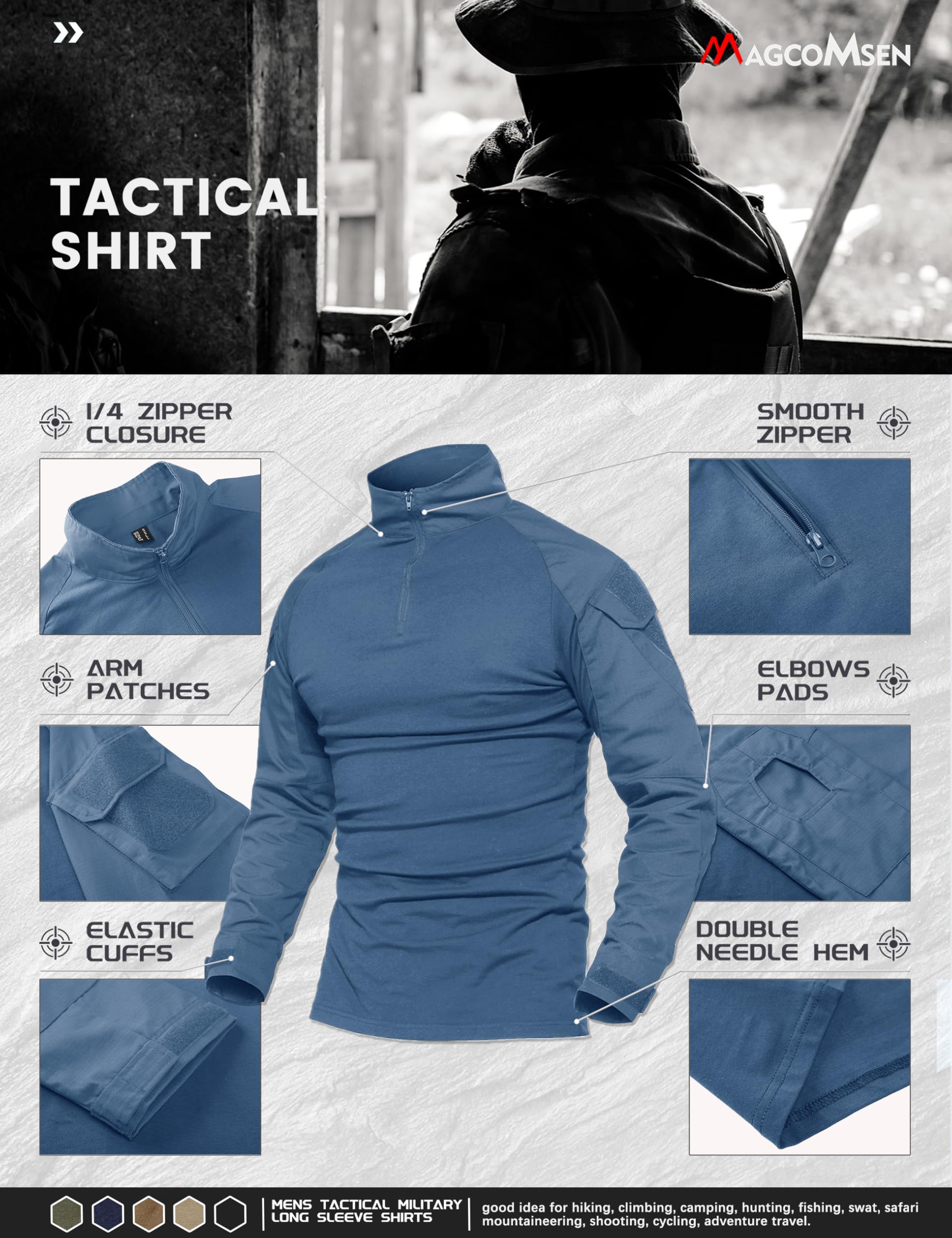 1/4 front zip; Good for spring, summer, autumn and winter