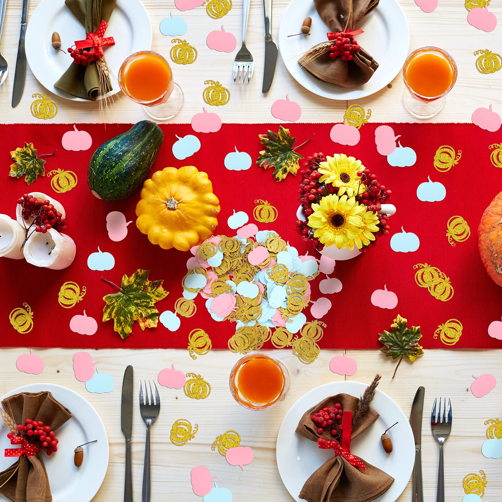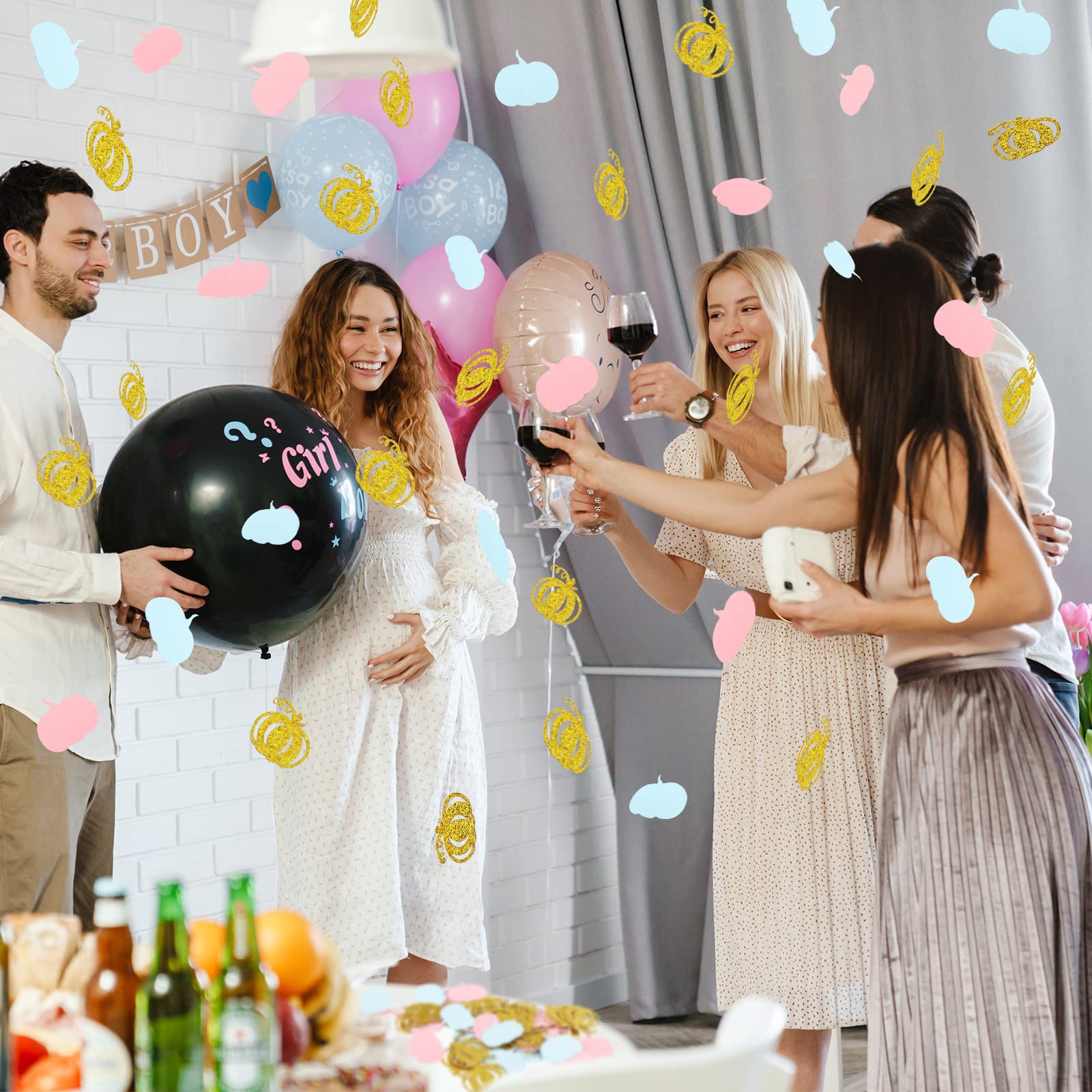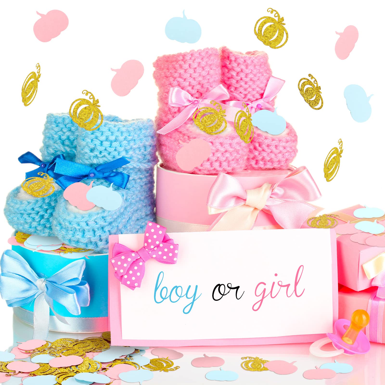 Baby Shower Confetti Set: you will receive 500 pieces of gender reveal confetti, including 150 pieces pink pumpkin confetti, 150 pieces blue pumpkin confetti, 200 pieces golden glittering pumpkin confetti, enough style and quantity to meet your needs, and easily change your baby shower party