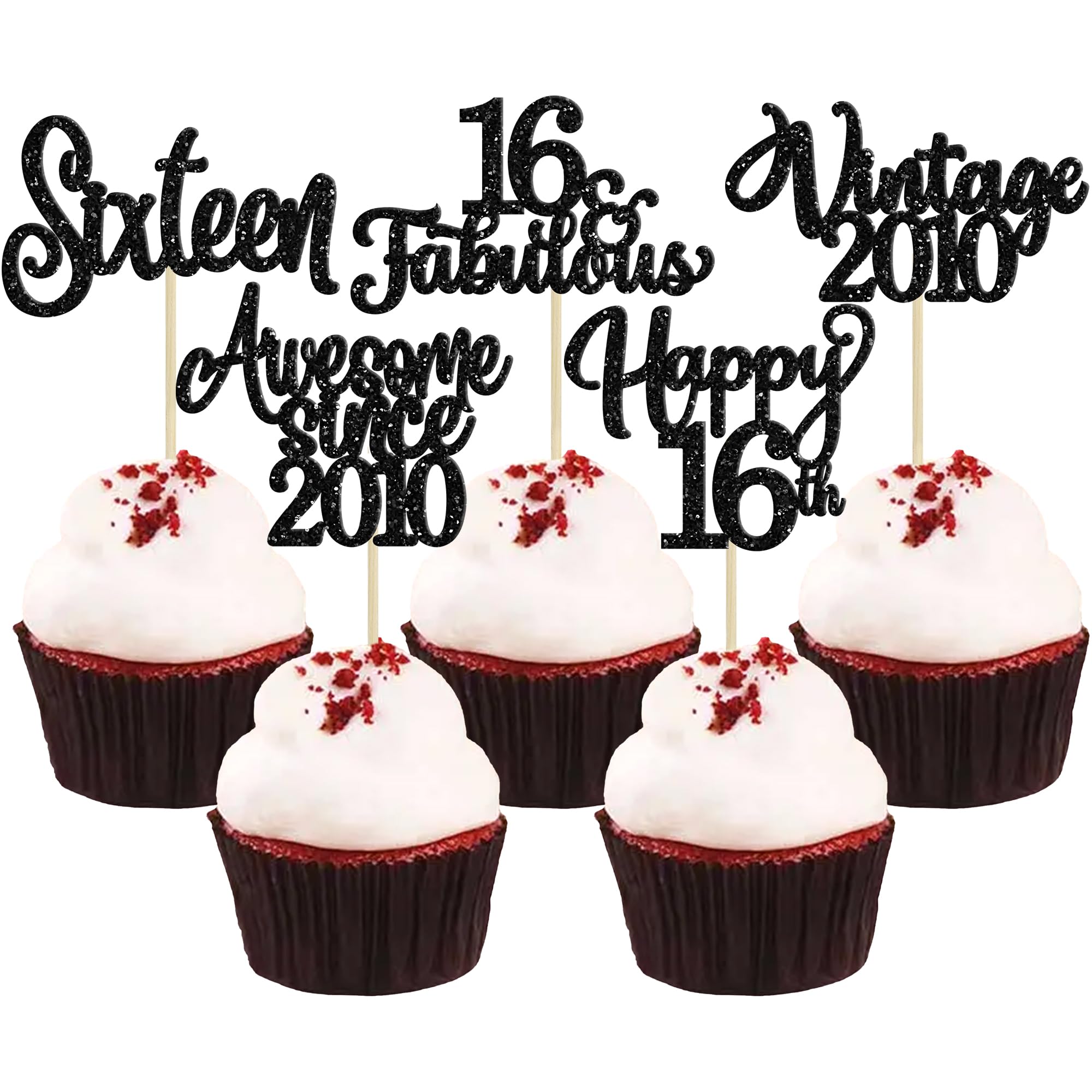 💖【Birthday Party Supplies】: 30Pcs Number Cupcake Toppers are perfect for vintage 2010 theme party, 16th birthday theme party, 16th wedding anniversary theme party,cheers to 16 years theme party cupcake decorations, they will make your cupcake more attractive and bring the fun to your party, make your guests fall in love with them!