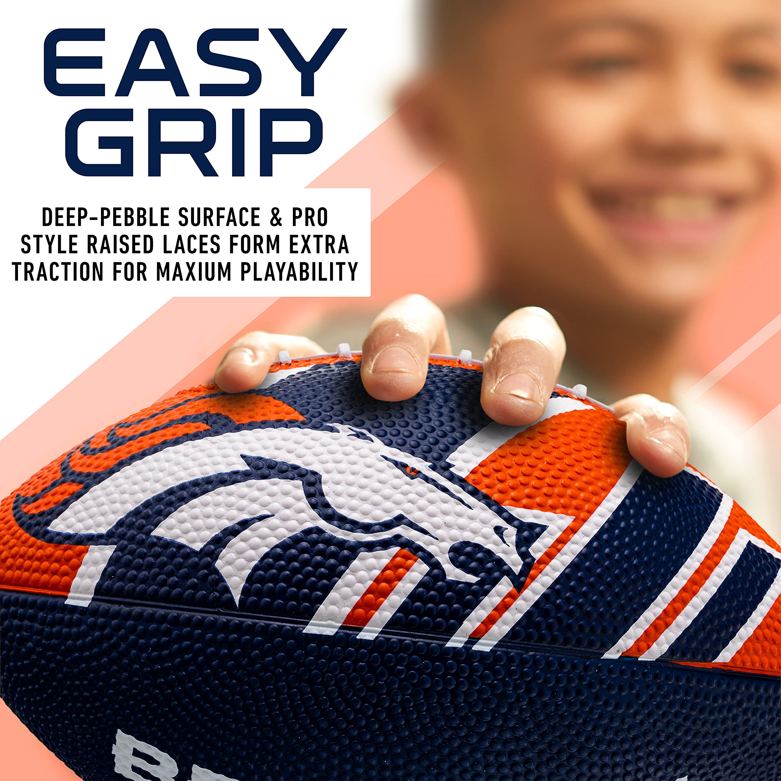 EASY GRIP: The deep-pebble surface material and pro style raised laces ensure extra traction which makes the footballs easy to catch and throw