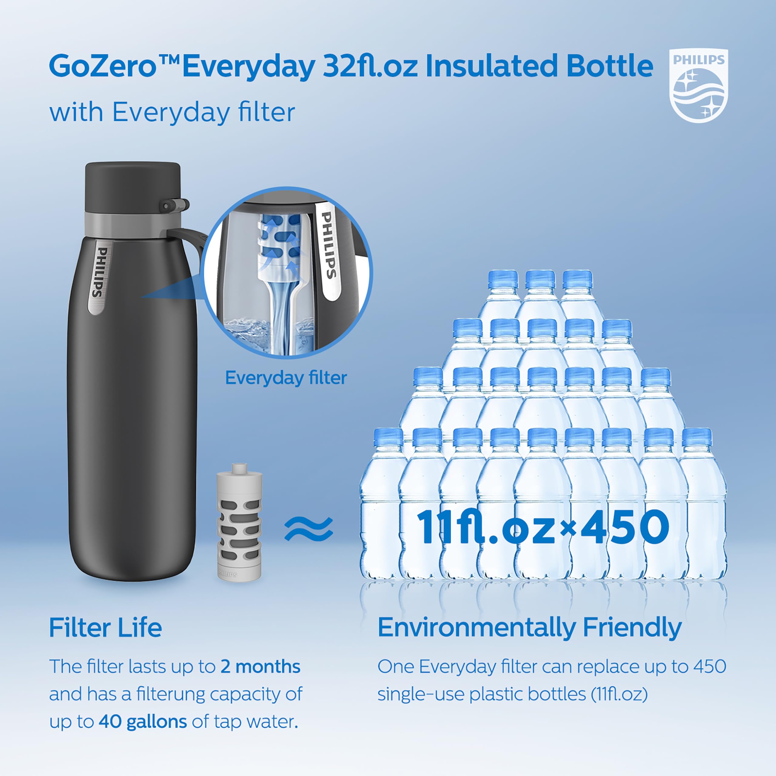 𝐆𝐨𝐨𝐝 𝐅𝐨𝐫 𝐄𝐧𝐯𝐢𝐫𝐨𝐧𝐦𝐞𝐧𝐭: Replace up to 450 single-use plastic bottles with one Philips GoZero Everyday filter. Using this reusable water bottle helps reduce your carbon footprint and supports a healthier planet by cutting down on disposable bottle use.