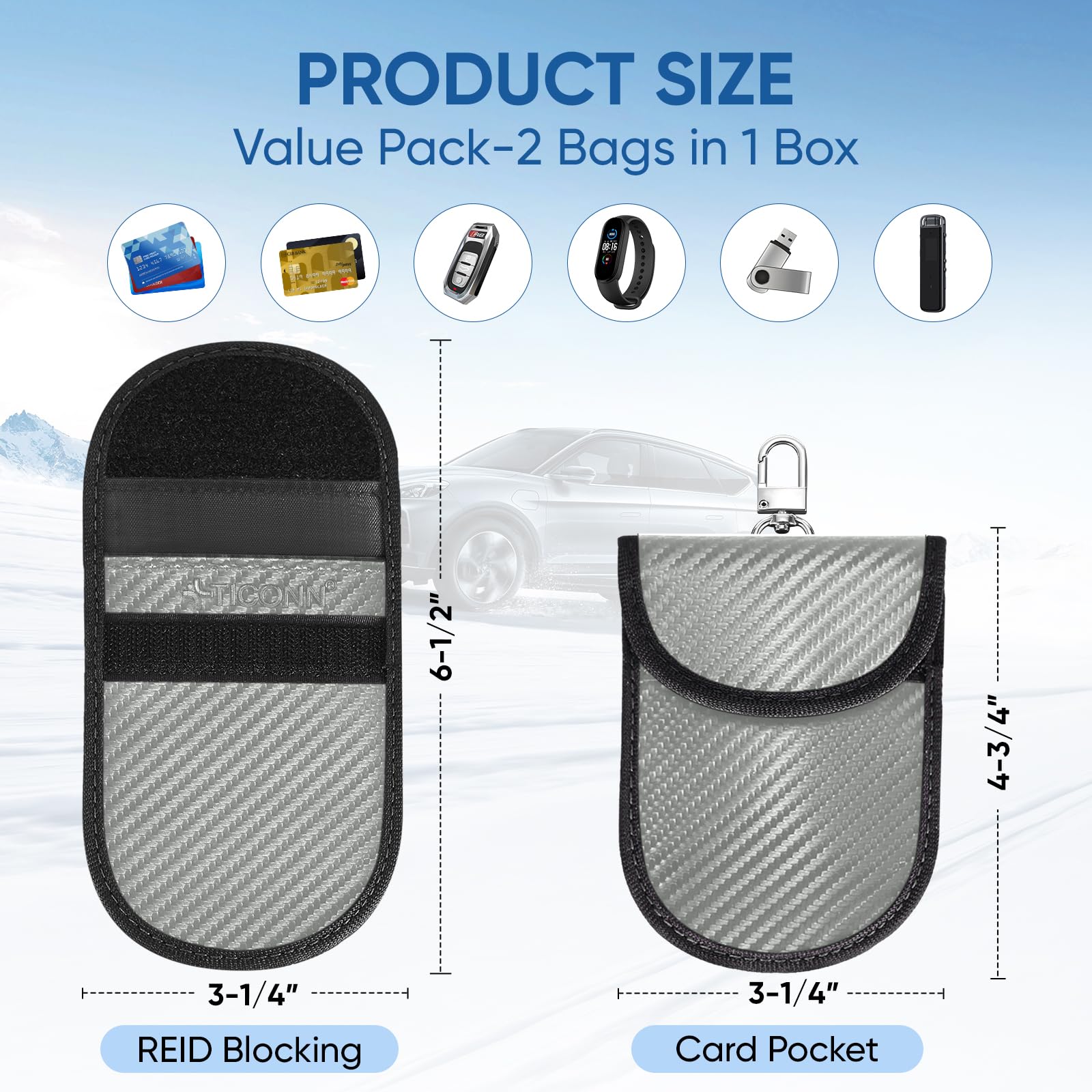 Why You May Need One: Get your car protected; TICONN faraday bag provides a complete signal blocker for your vehicle key fob; This prevents thieves from picking up and relaying signals from your key, to shield against break-ins and keyless ignition theft
