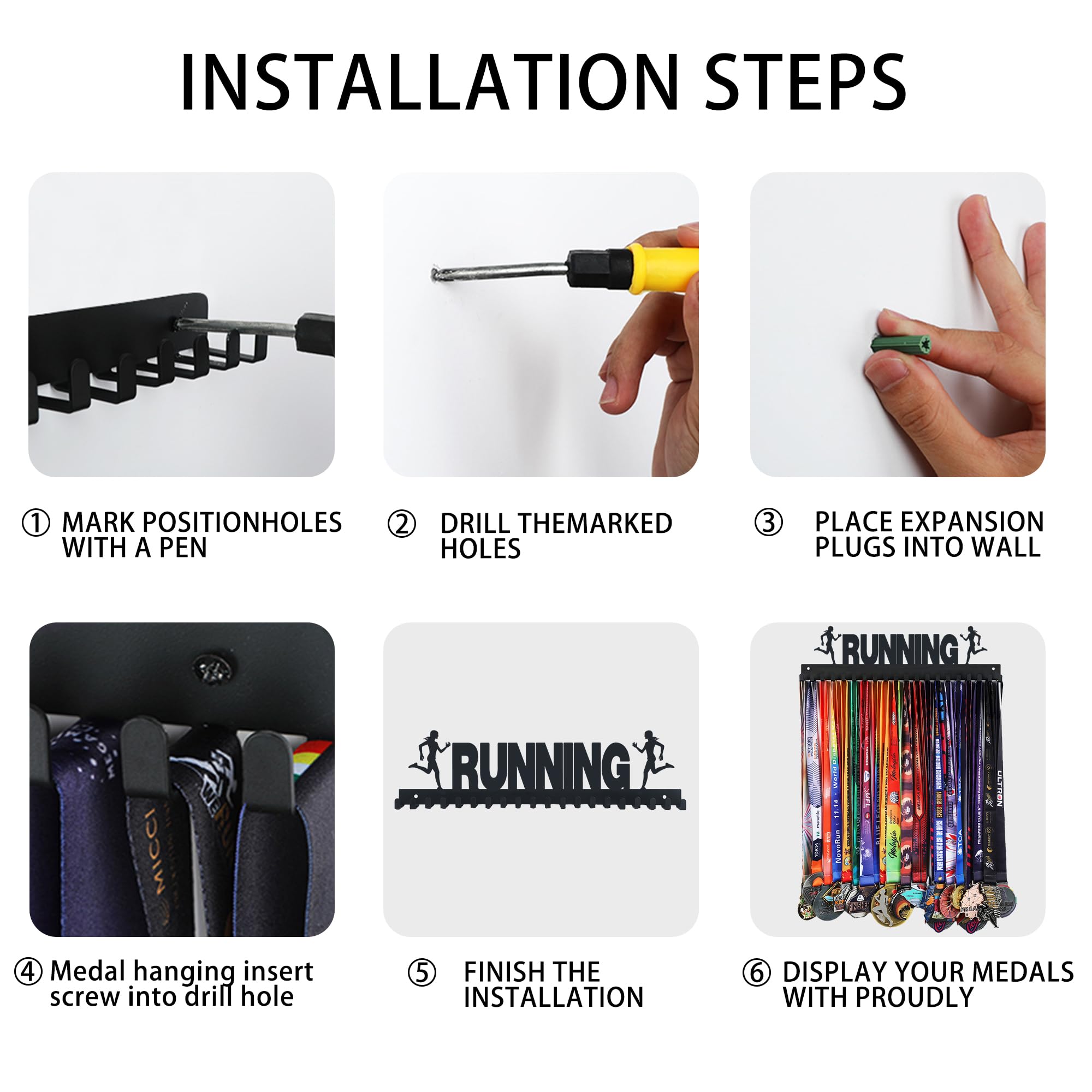 【Easy To Install】Goutoports package incloud medal hanger and screws .Our stainless-steel medal display hanger comes with all the essential equipment and mounting hardware, help you to easily mount the medal display hanger.
