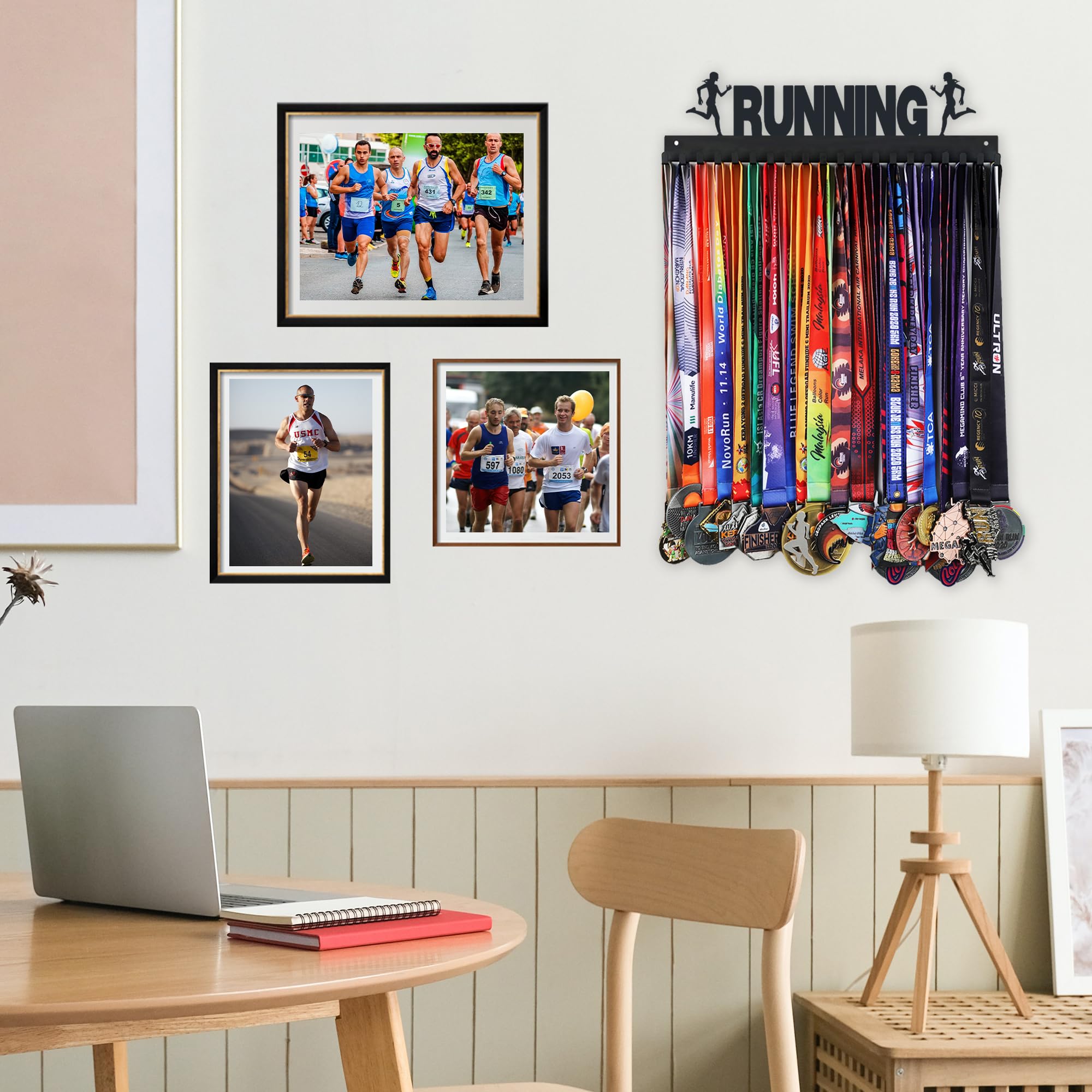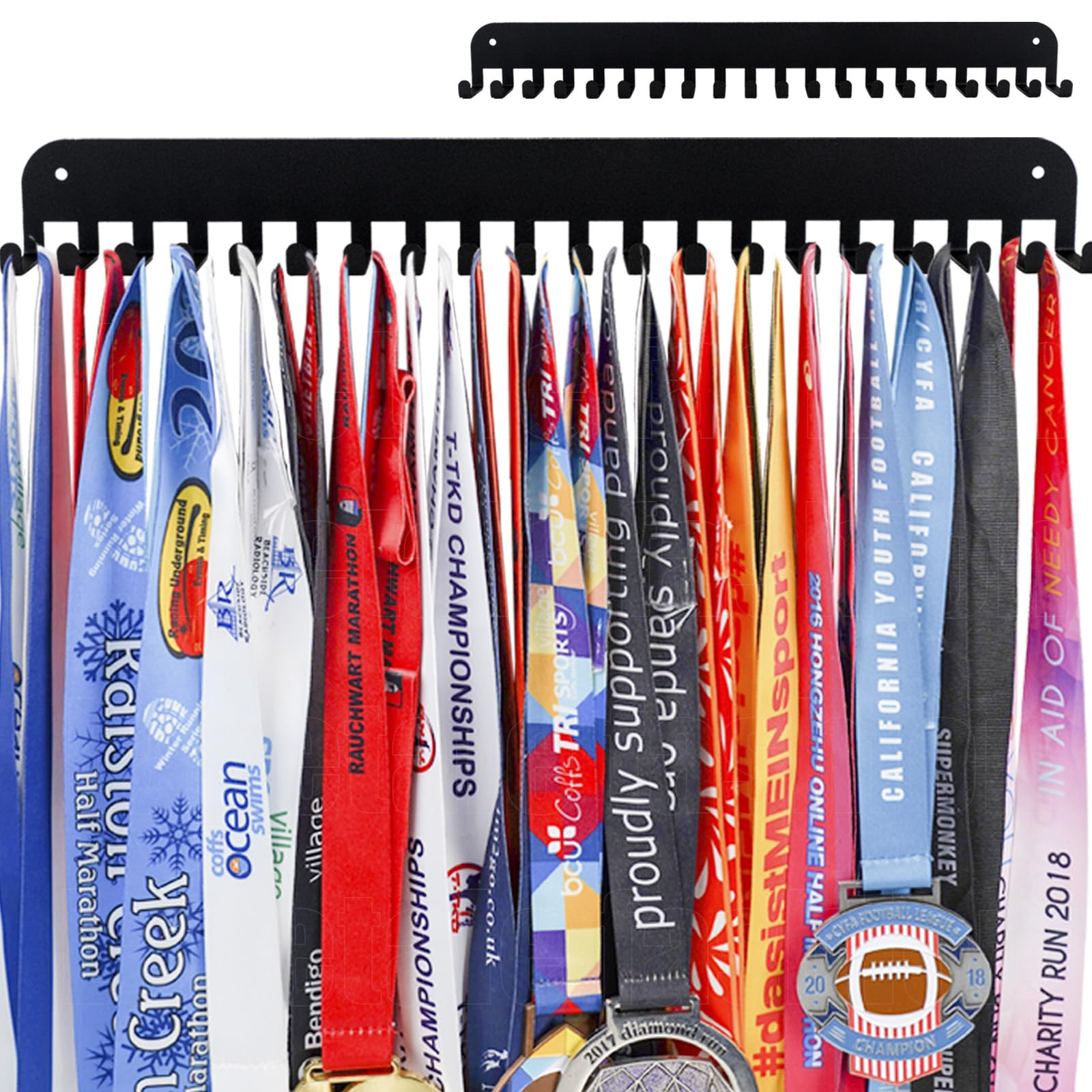【Easier To Hang More Medals】With 20hooks,open hook designed, you can easily store and take out hard-won medals.Perfect for hold men and women marathon, triathlon and running medals, sports medals from swimming, wrestling, gymnastics, karate, hockey, dance, soccer, volleyball, baseball, basketball.