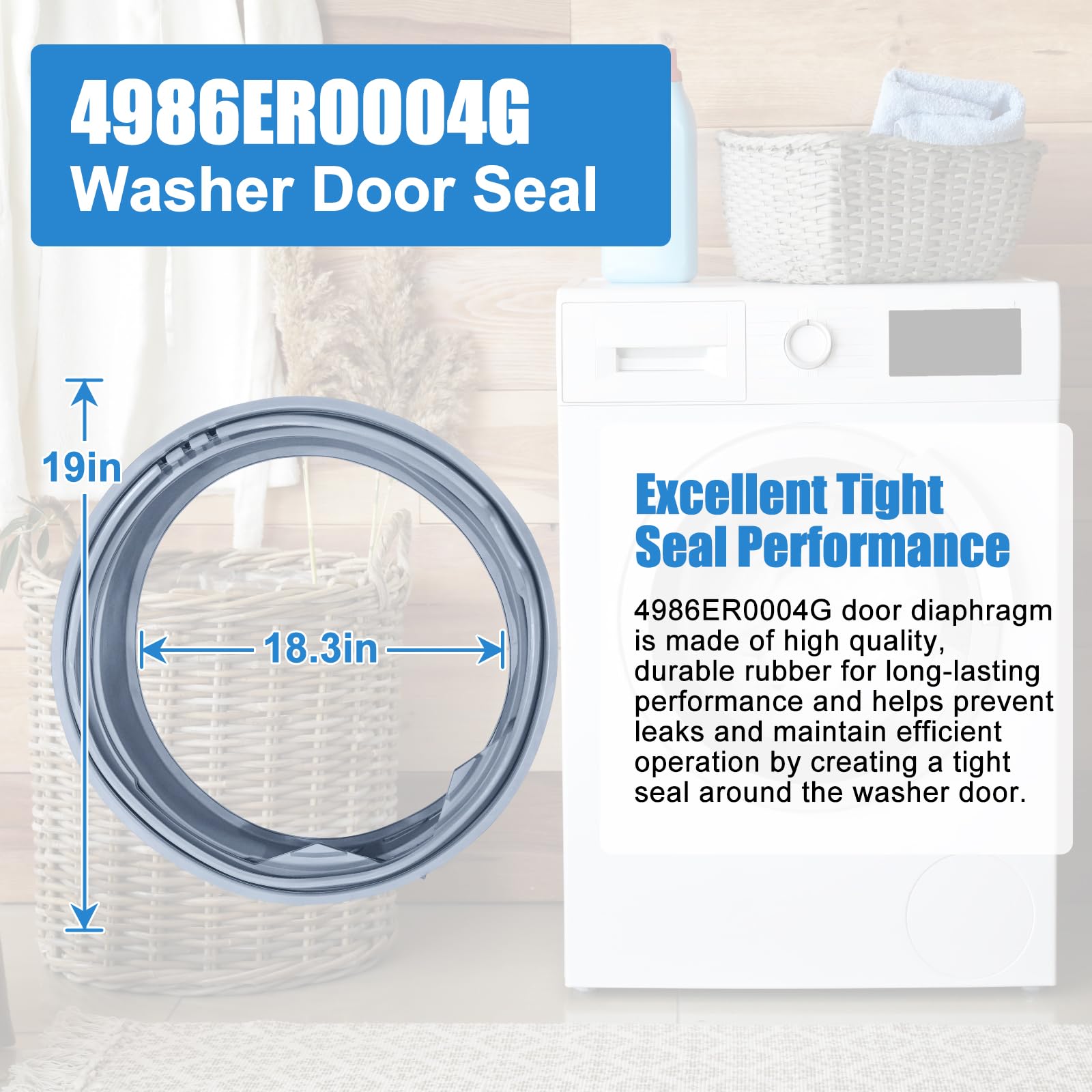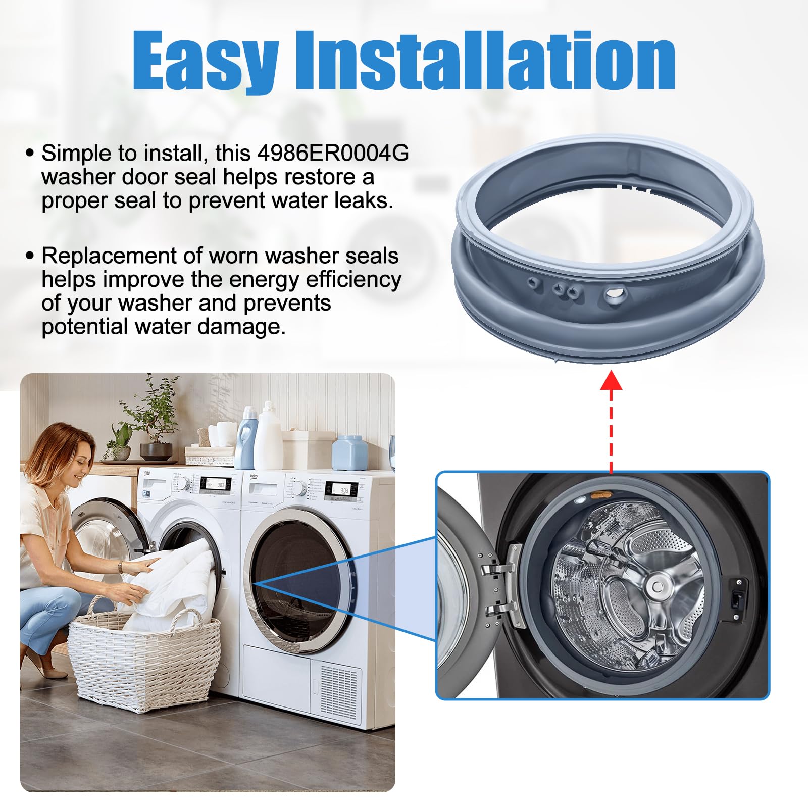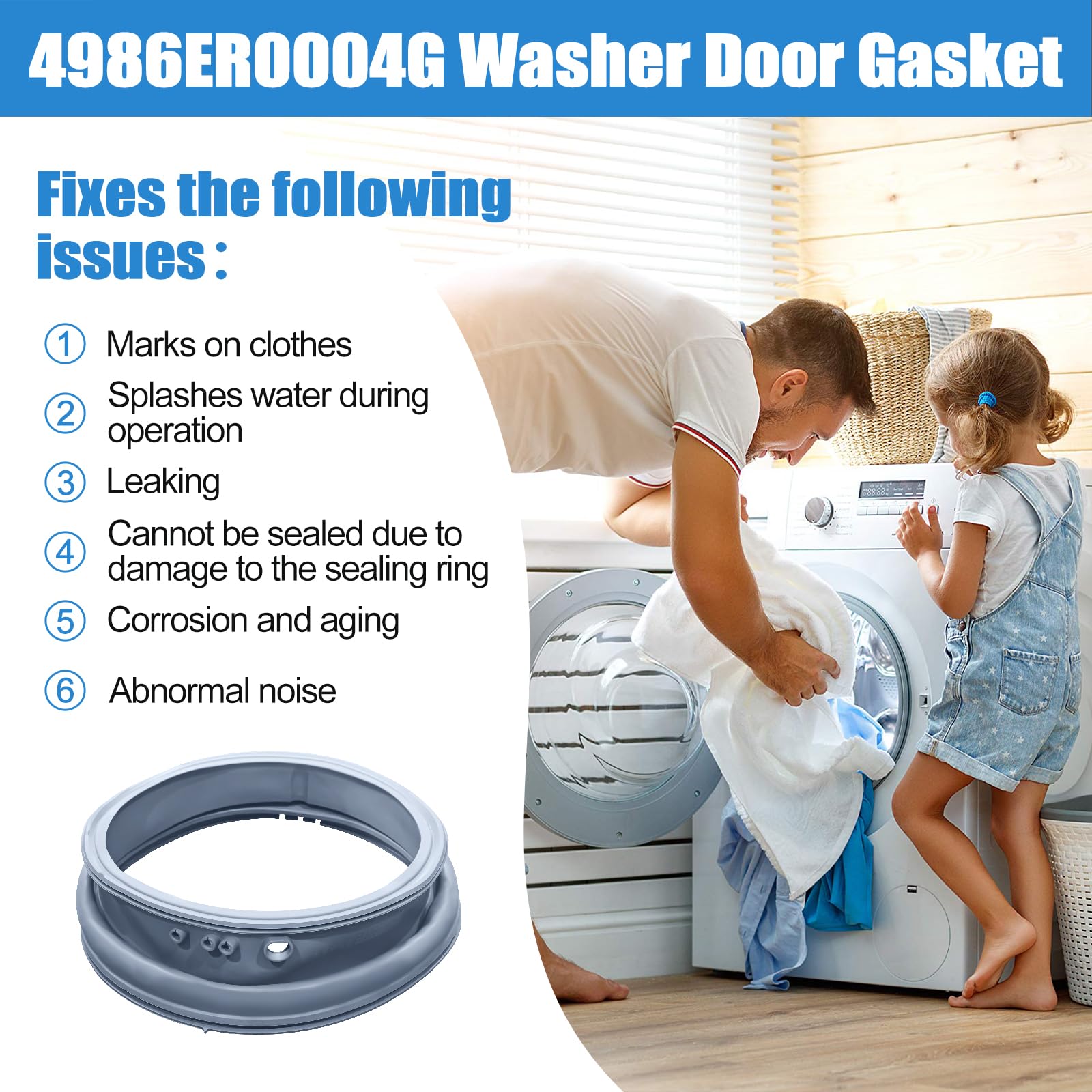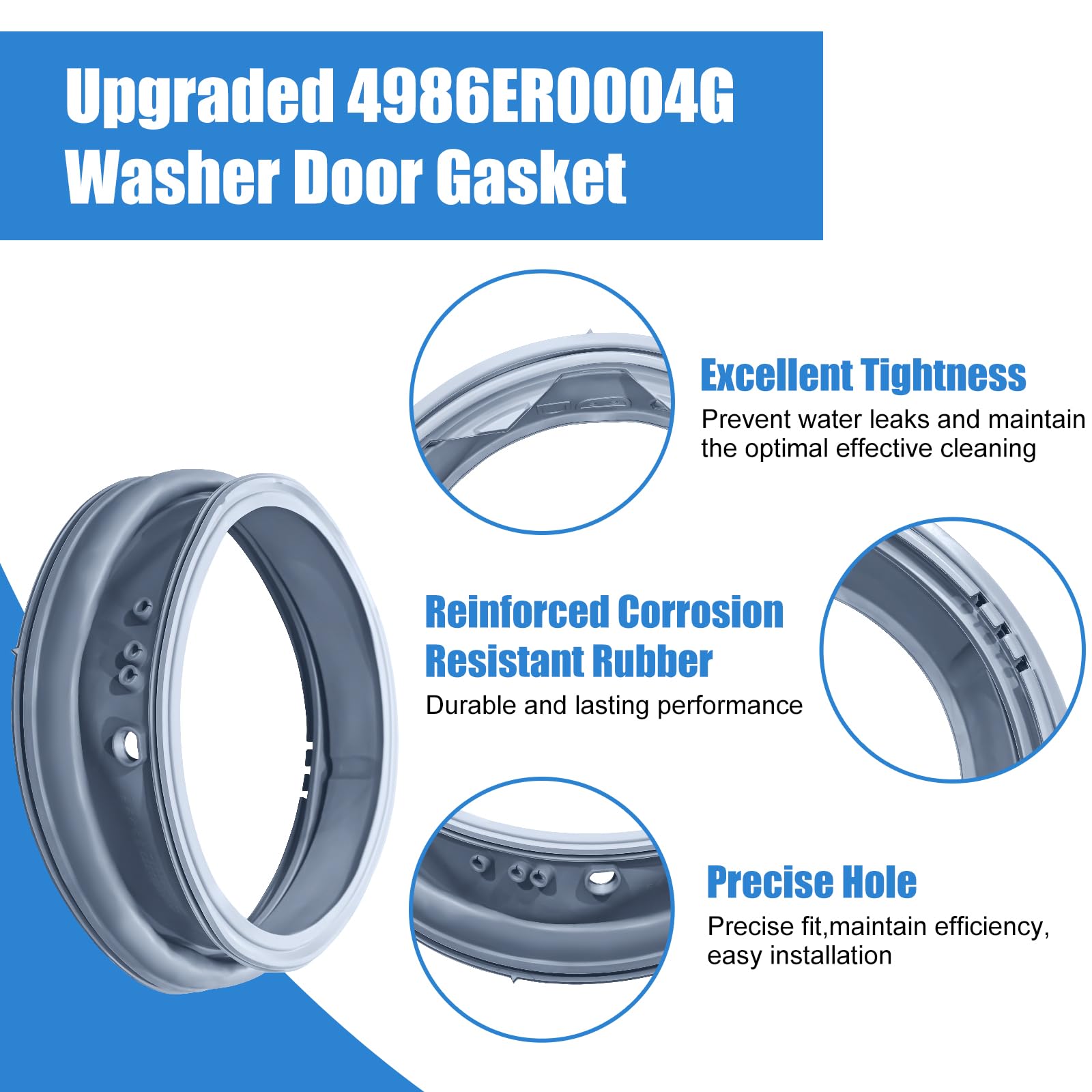 【4986ER0004G LG Gasket Washer Door Seal Replacement Rubber Seal】4986ER0004G Washer Door Seal Replacement Part for LG,Kenmore Washer Door Gasket Replacement Part numbers: 4986ER0004G,AP4439732,1377589,AH3524978,EA3524978,PS3524978.The upgraded 4986ER0004G lg front loading washer door seal solves the following problems:A.Water splashing during operation; B.Failure to seal; C.Door seal has been damaged; D.Failure to eliminate odor; E.Abnormal noise.