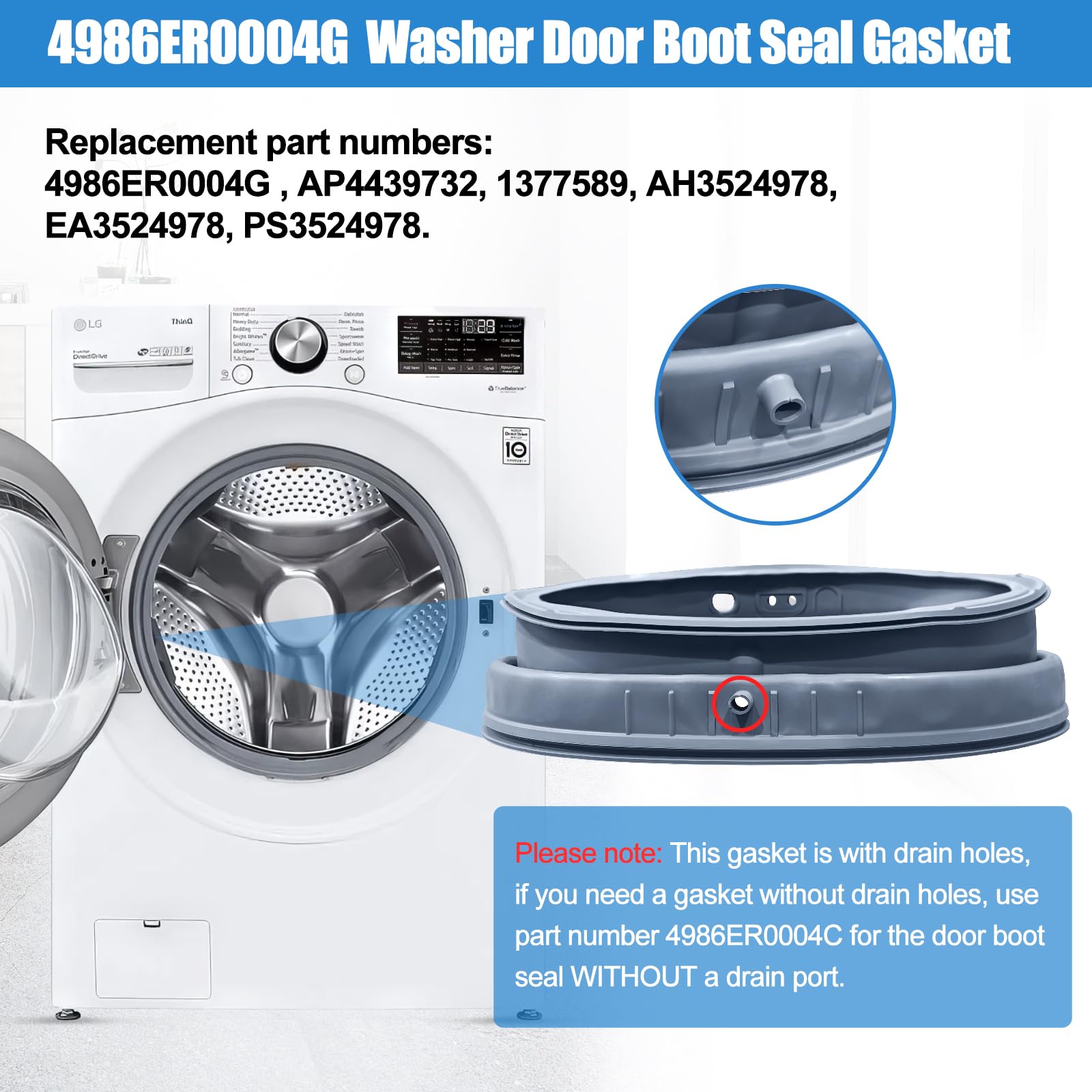 【Please Note】The 4986ER0004G LG washer gasket does have a drain hole, if your original washer does not have a drain hole you will need to order part number 4986ER0004C Washer Door Seal without Drain Hole.
