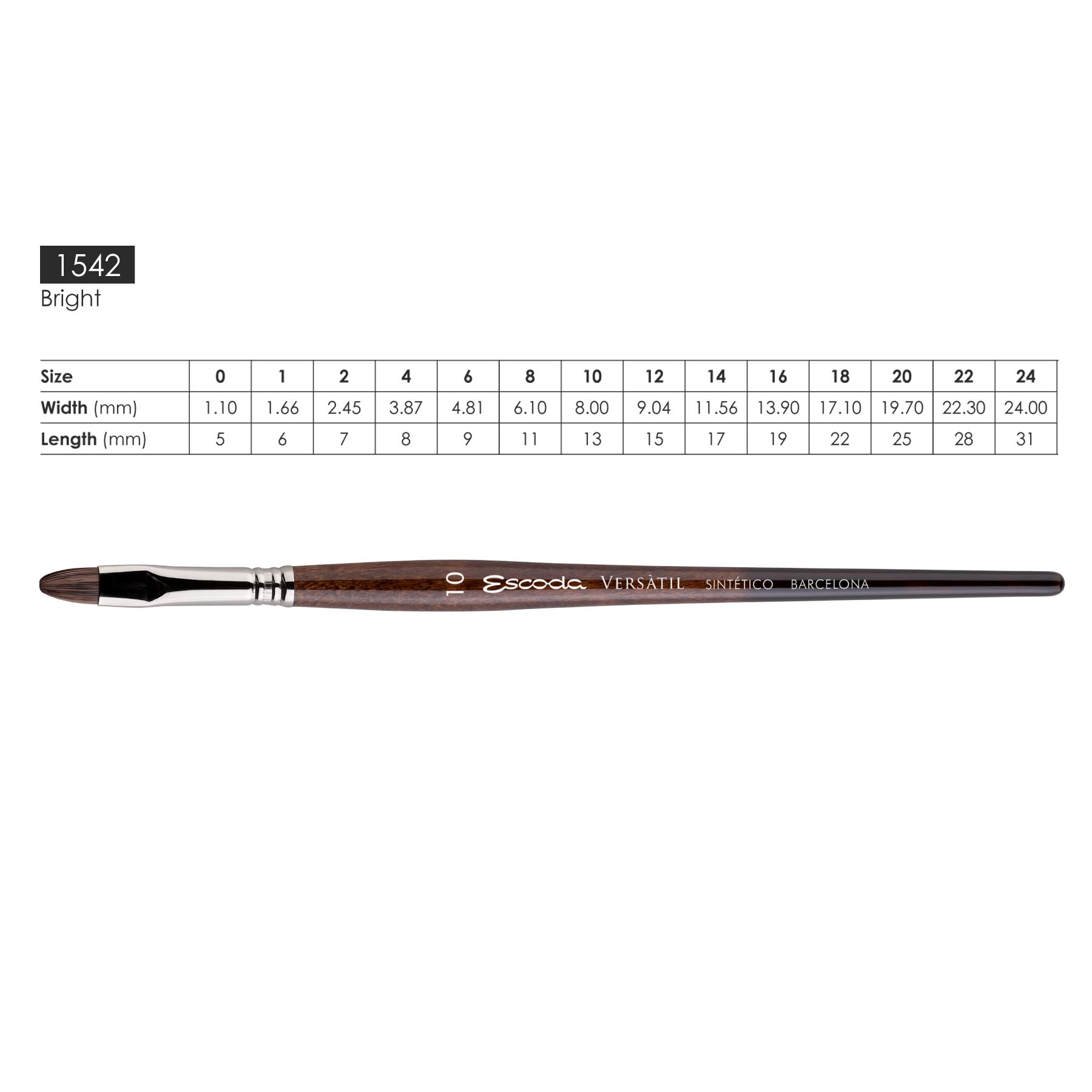 The Escoda Series 1542 Versatile Brushes are made from a custom blend of distinctively patterned synthetic fibers containing all the attributes of natural Kolinsky. A perfect choice for the professional or seasoned watercolor artist, this is an elegant brush that retains its perfect edge after much use and has top notch color retention & spring. Escoda brushes continue to be made by hand by the Escoda family as they were since 1933. This is a short handle size #22 bright brush with bristles measuring a diameter of 22. 30mm and length of 28mm.