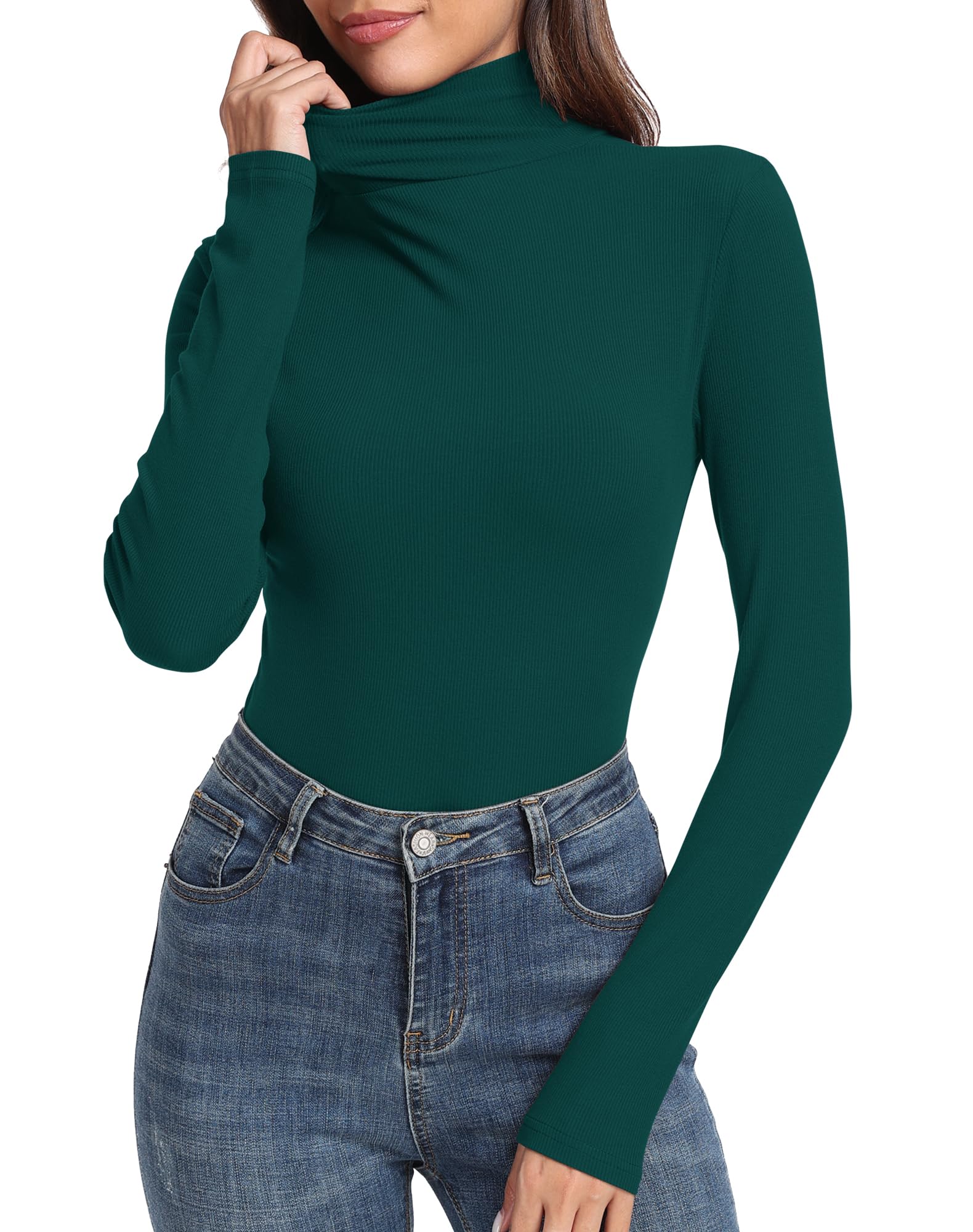 Fearure: Long sleeve shirt, women turtleneck shirt, comfy soft ribbed tshirt, slim fit layering tops.
