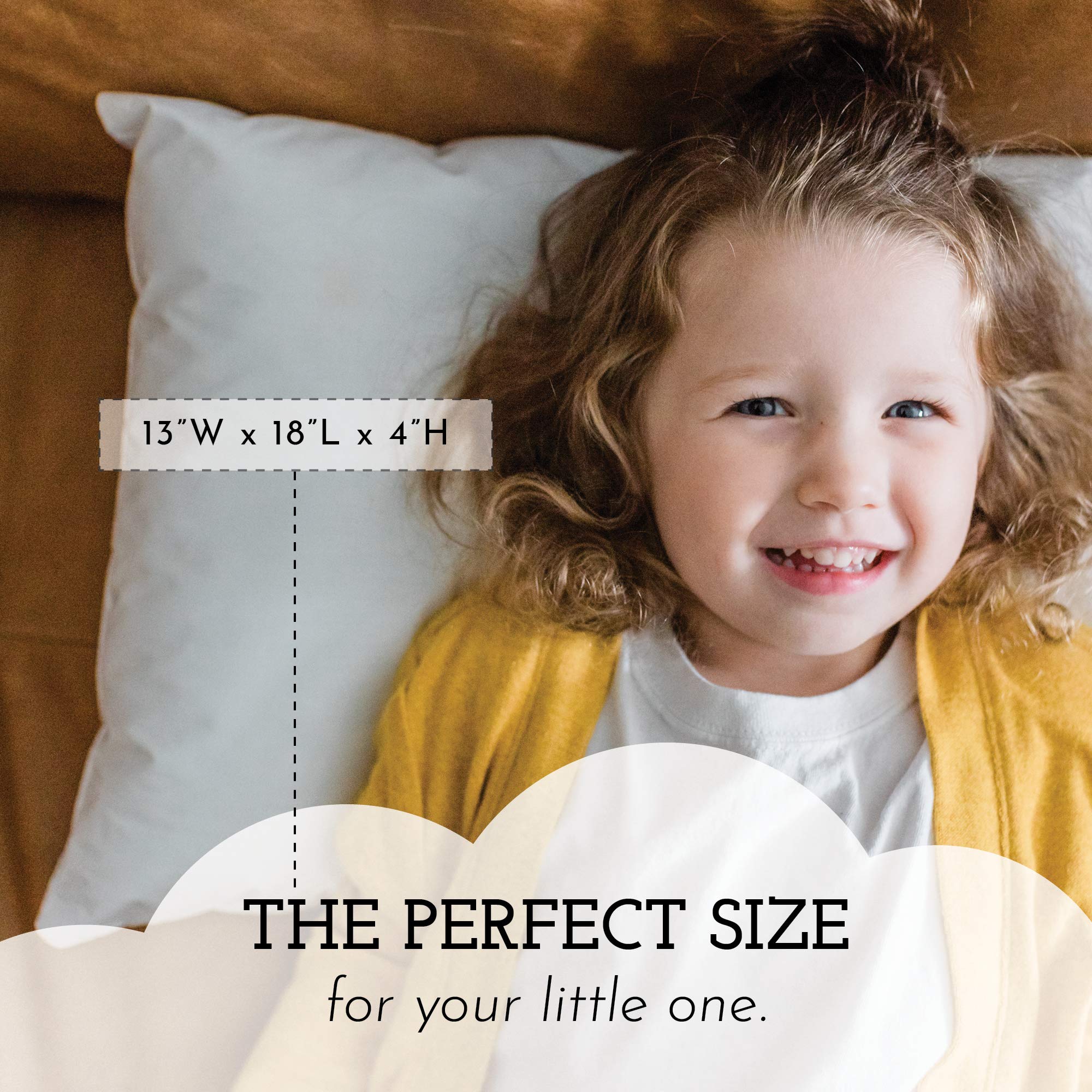 13" x 18" Toddler Travel Pillow - This snugly, take-it-everywhere he or she goes small pillow is THE perfect toddler bed pillow size and softness for your toddler! Our toddler pillow 13 x 18 are just right for toddler beds too!