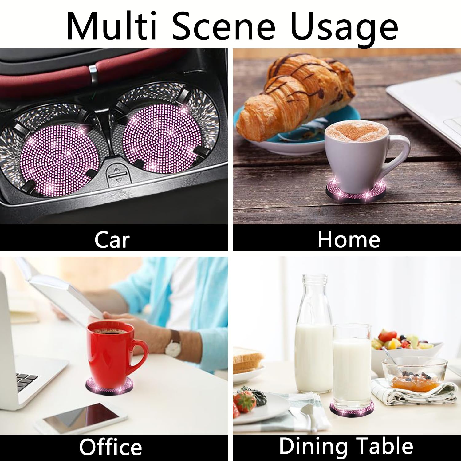 Buy with confidence: you will be provided with 2 pcs silicone crystal car coasters. If something ever happens to the product, we'll replace it for you for free! Or send you an immediate full money back. Please rest assured to buy.