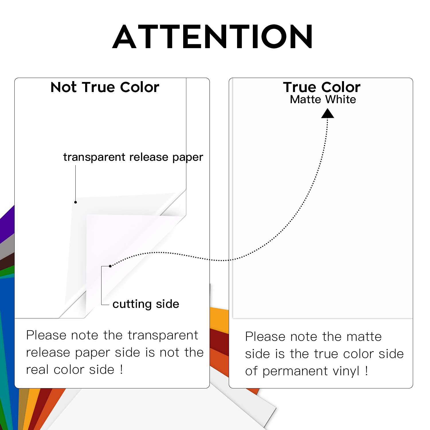 👕 Clear PET Backing 👕 - NOTE: The real color of our vinyl is the opposite of pet backing! Say goodbye to paper backing, which sticks to mat and ruin your design. Using our white permanent vinyl with PET backing, you will not need to clean your mat and worry about project damage. No more cheap paper backing ruining and separating from the vinyl for cricut in the cutting process. Our PET backing is the ultimate answer to your woes.
