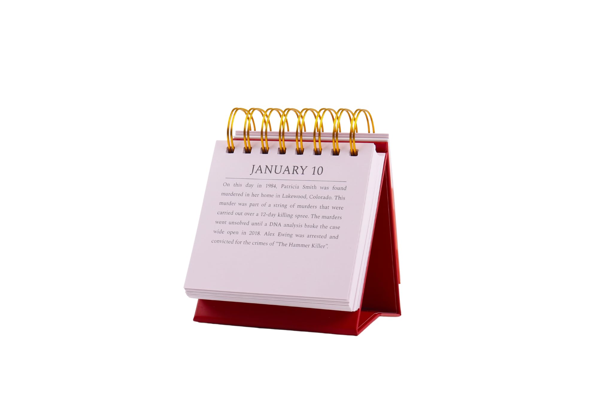 Over 280 True Crime Cases - Not only are there 366 days full of true crime facts, but this calendar includes over 280 different cases! With this flip calendar, there are no fillers to take up your time and space, just true crime facts every day!