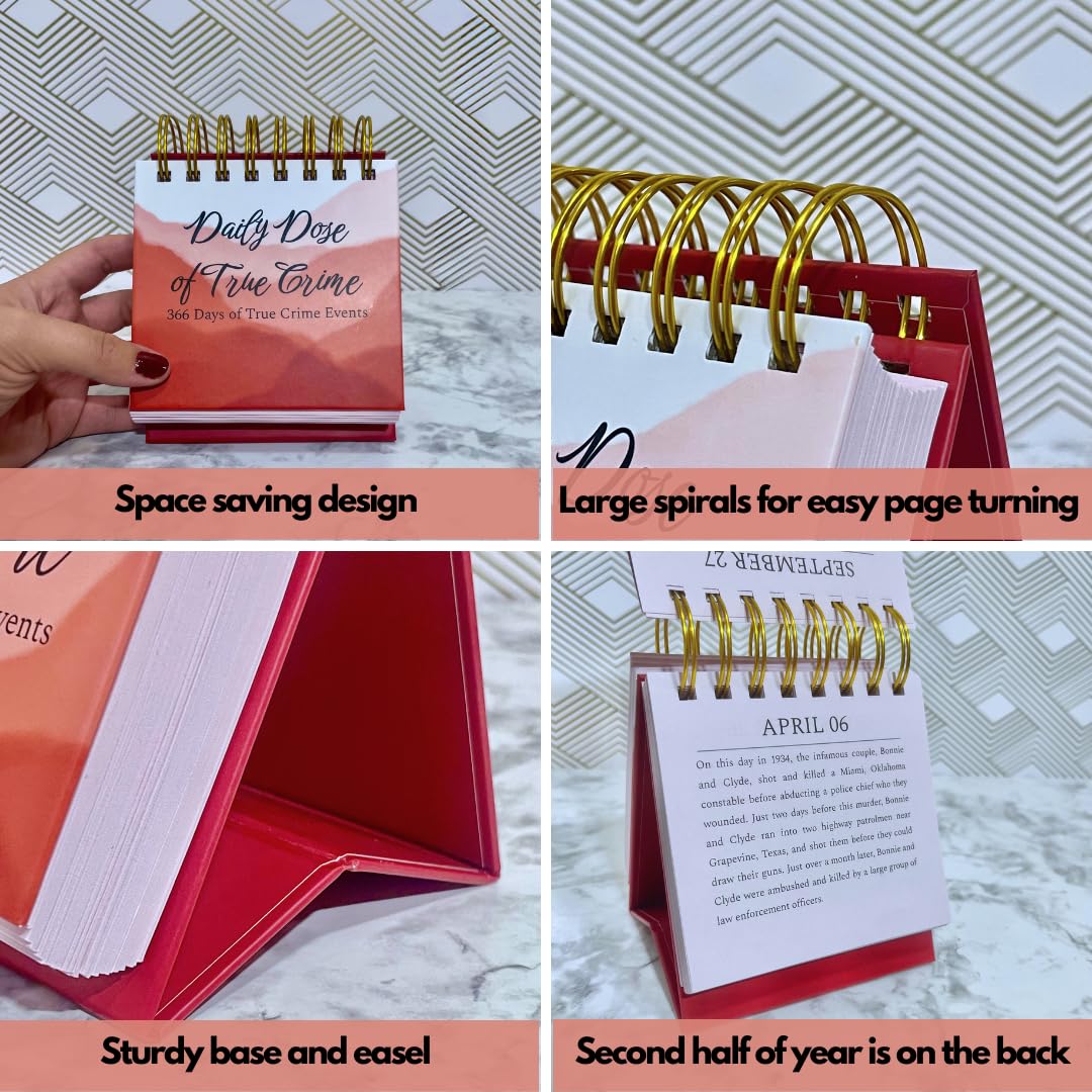 Year Round & Space Saving - This calendar is designed to be undated, giving you a page a day for any year, but includes February 29th for leap years. The undated design allows you to have a full 366 days of true crime facts, no matter what month you buy it! This flip calendar is designed front and back, so simply flip the calendar for the 2nd half of the year.