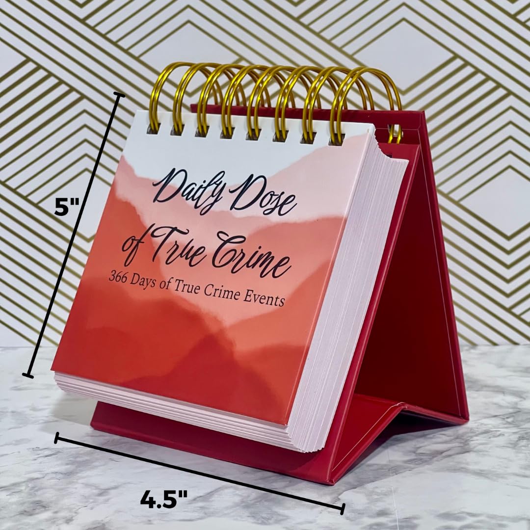 Daily True Crime Facts - No really, I mean daily! There are 366 carefully researched true crime facts correlating with the specific date in this flip calendar! This includes Saturdays and Sundays!