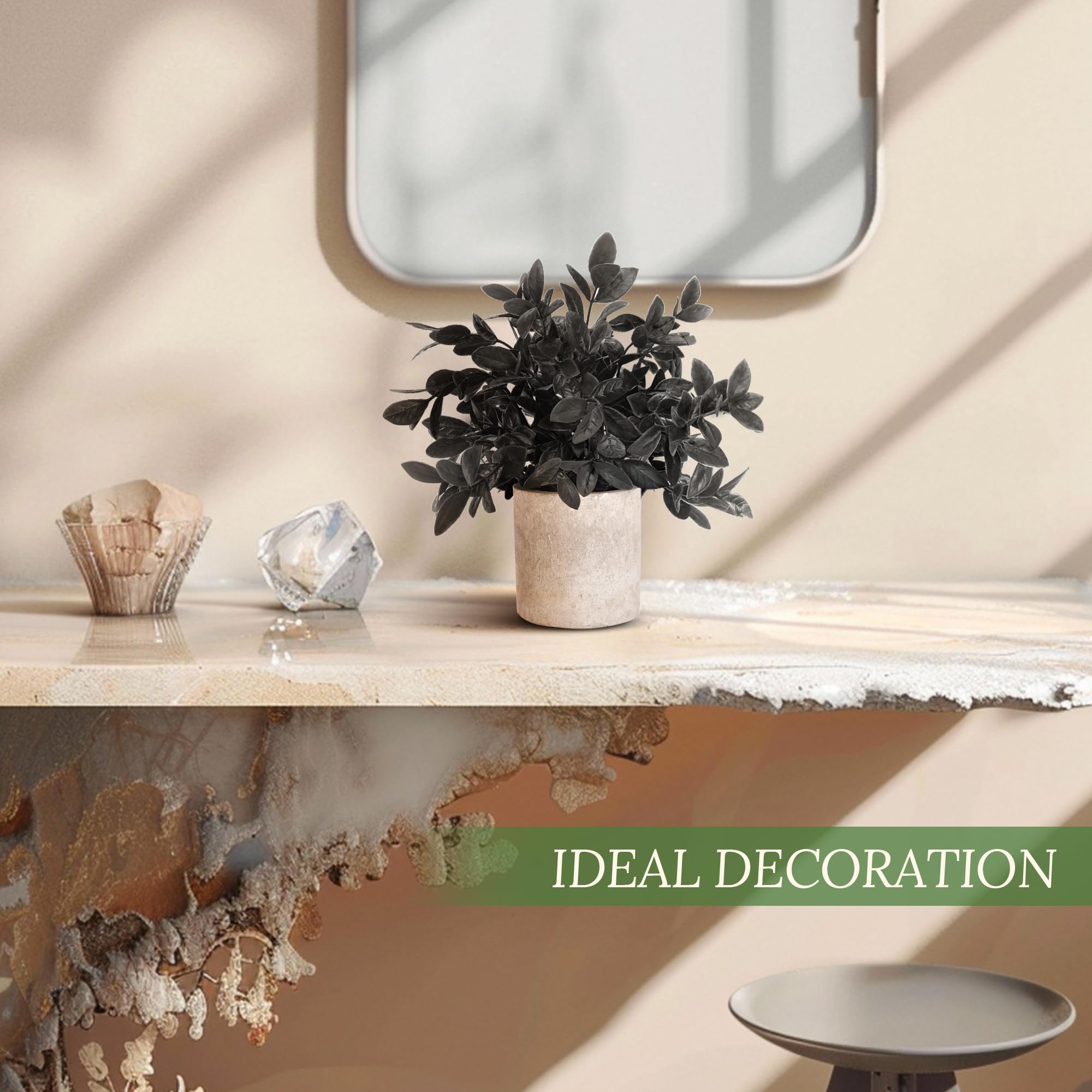 Durable Material: Our mini potted black artificial plants indoor have eucalyptus leaves that are made of plastic. The pot is made of good paper pulp, please do not put it in the water