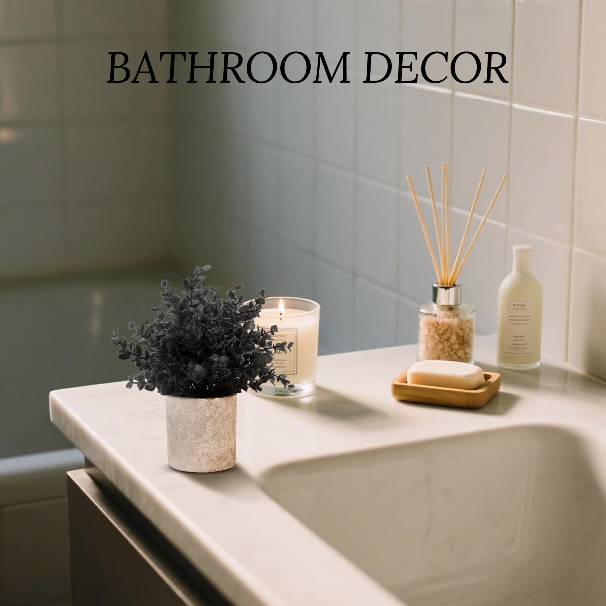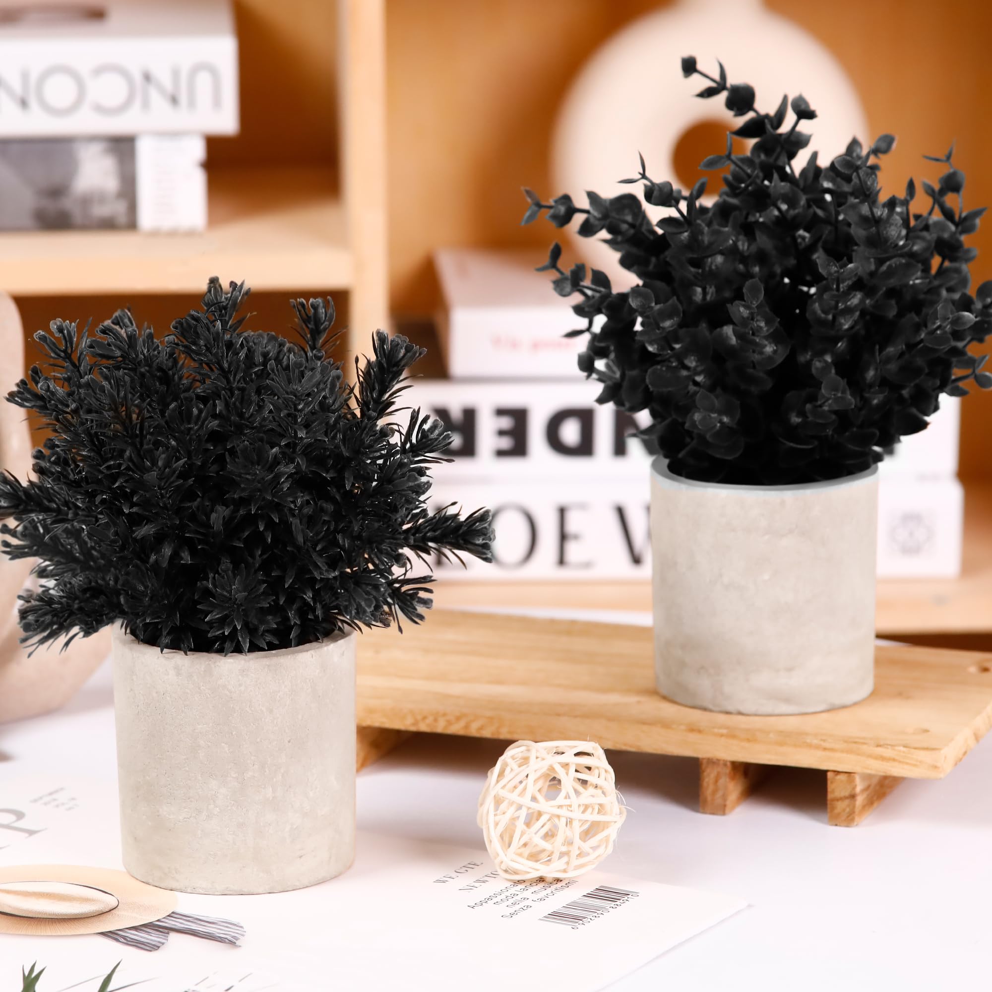 Delicate Design: The lifelike halloween black bathroom plants decor can bring green life and freshness to your living space. We adopt a unique design to imitate the frosty black leaves of eucalyptus, and flock the surface of each potted plant. The black leaves make them look more realistic, which is not dust, please don't worry about it