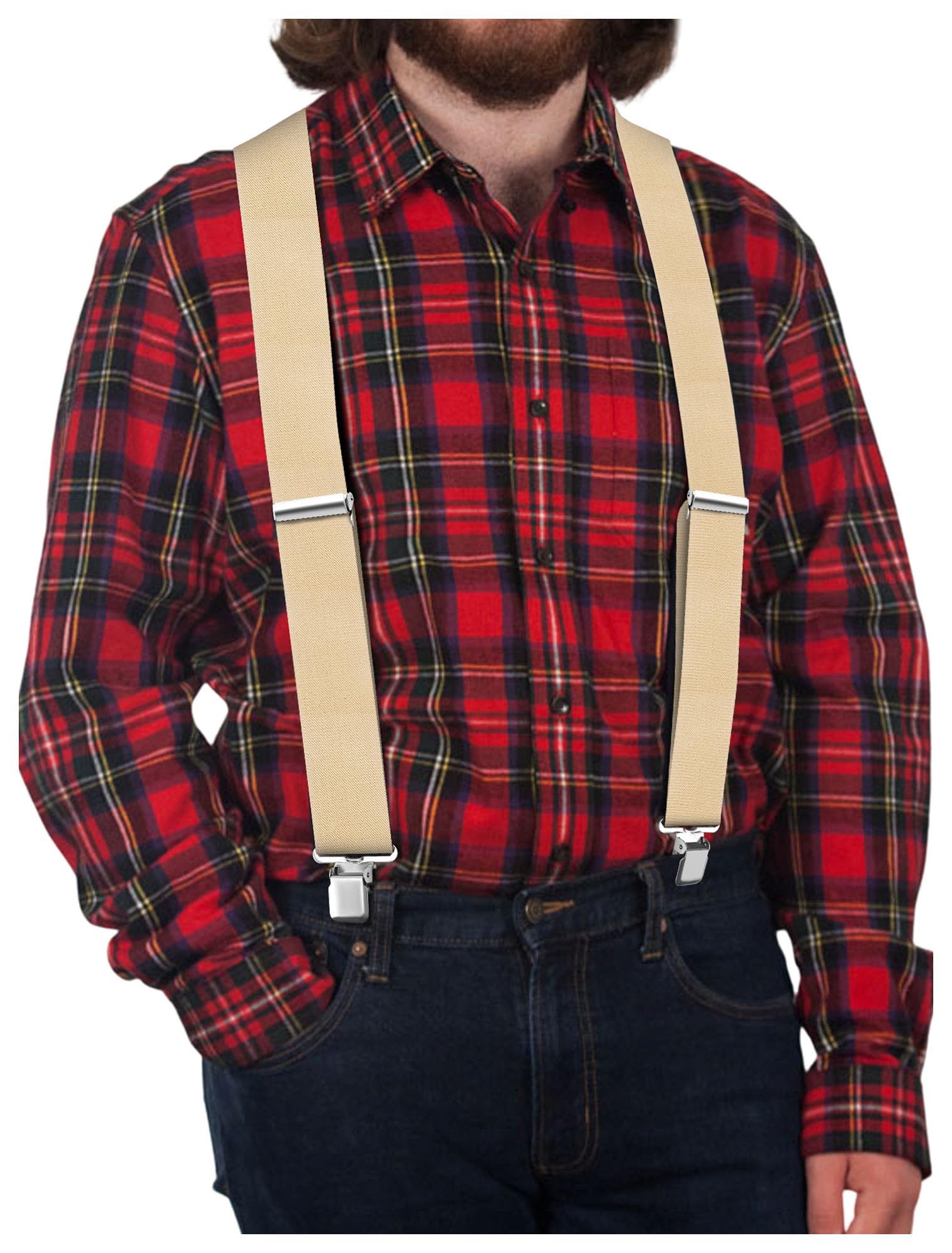 DURABLE HIGH QUALITY: Suspenders for men are built for durability, all-day wear, and a secure fit. Made from high-quality elastic and strong clips, they hold heavy pants firmly without slipping or damaging clothing. Suspender Clips stay locked all day - no accidental unbuckling